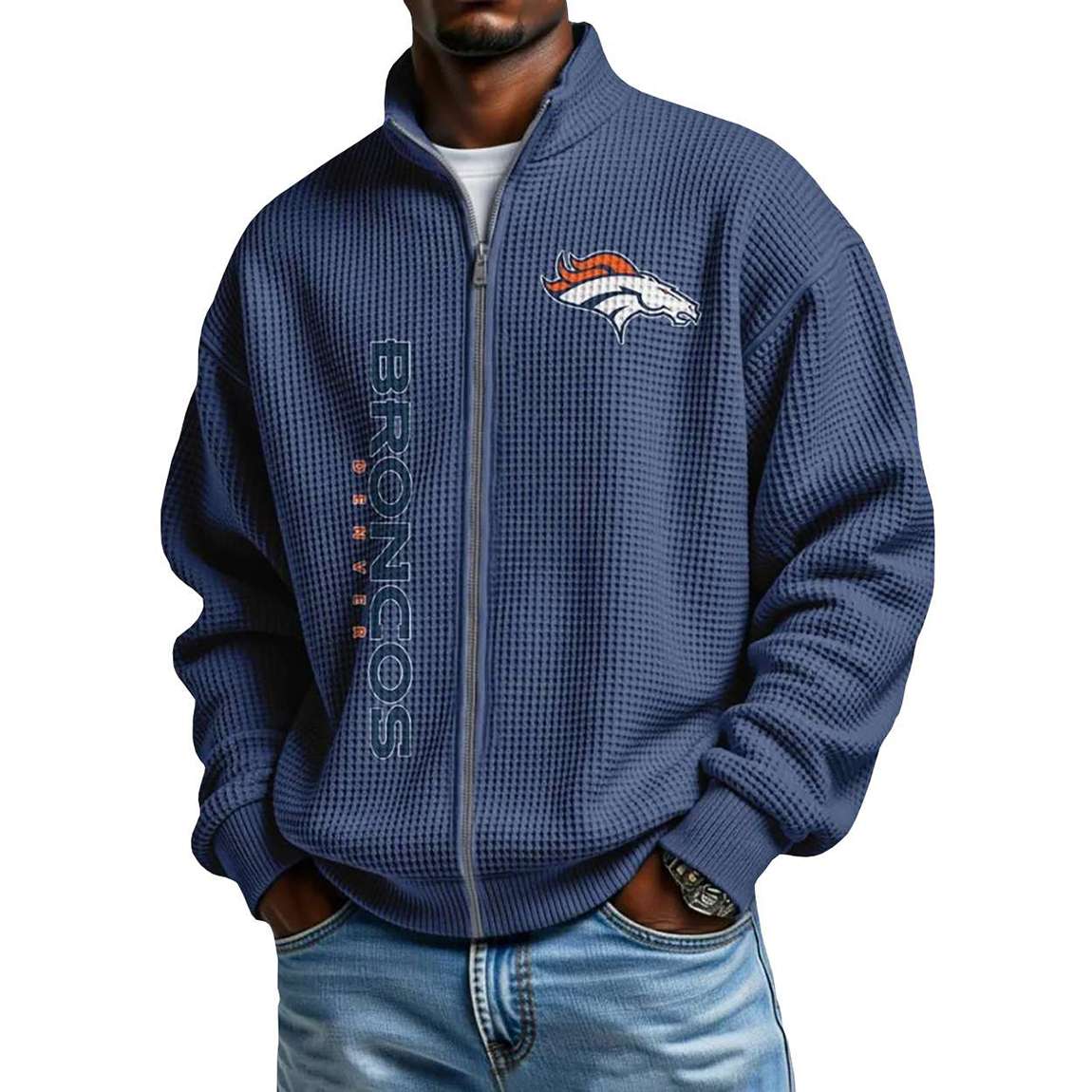 Mile High Legacy: Broncos Football Waffle Zip-Up Sweatshirt