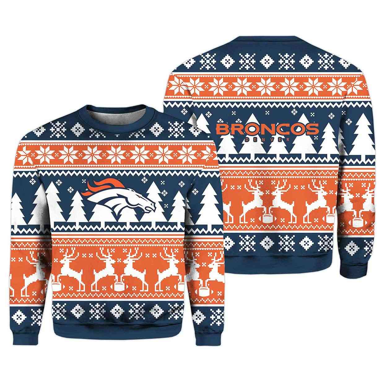 Show off your Denver pride with the Broncos Reindeer Football Christmas Ugly Sweater. Featuring bold orange graphics, festive winter motifs, and iconic team imagery, this design connects sports legacy with seasonal charm—perfect for fans who value tradition, humor, and community spirit.