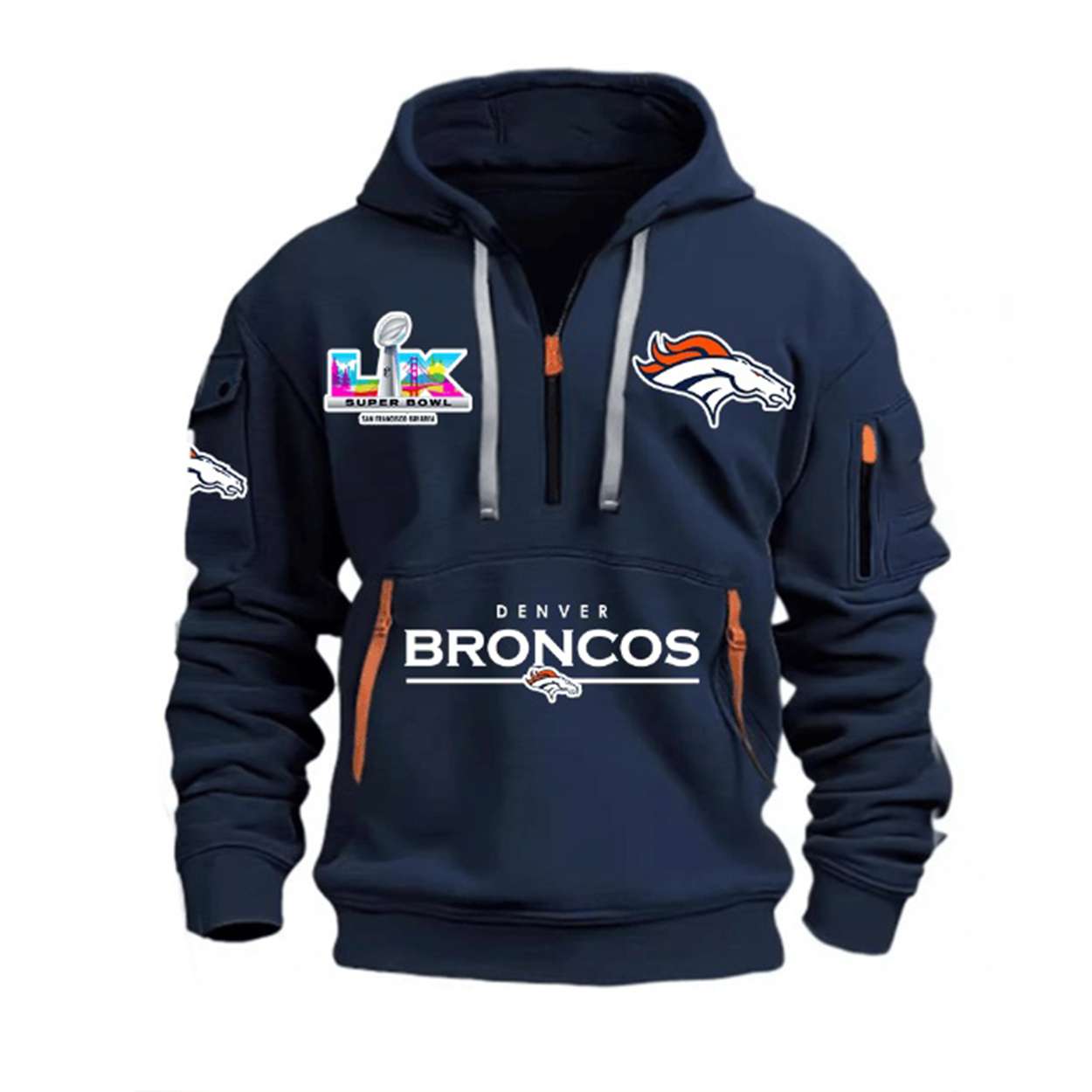 Gear up for the future of football with the Broncos SBowl 2026 Hoodie Half Zipper. Featuring iconic Denver Broncos graphics and a nod to Super Bowl 50 history, this hoodie connects fans to legacy, grit, and the spirit of champions.