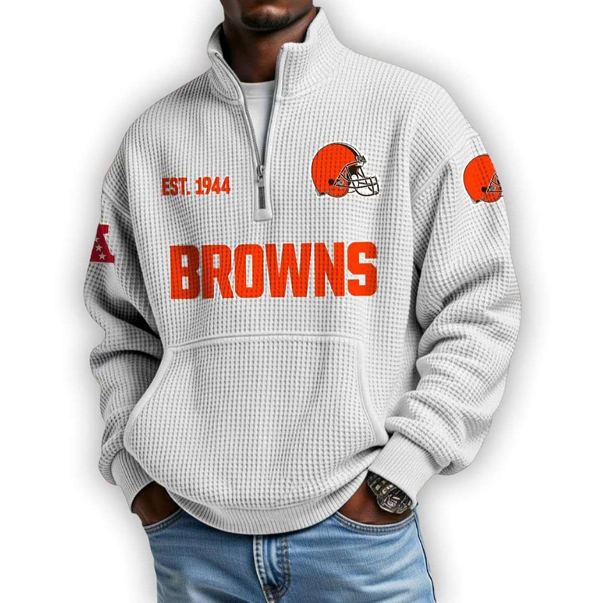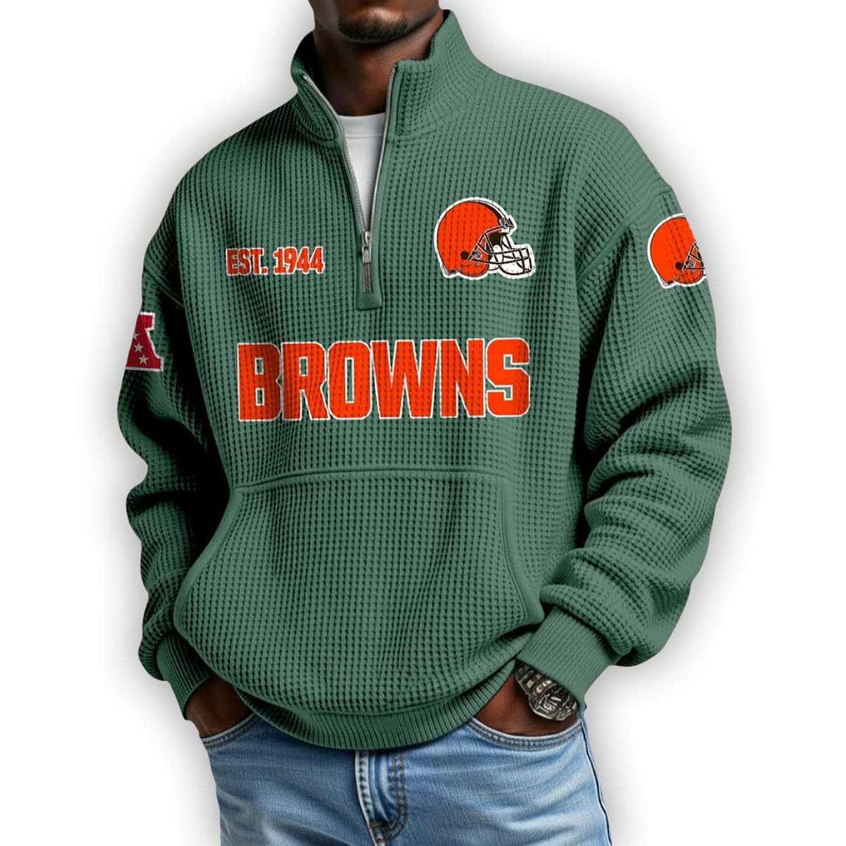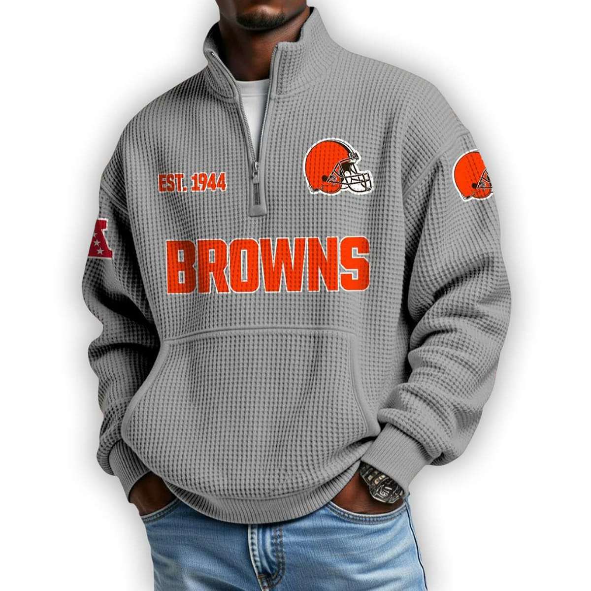 Honor the legacy of Cleveland’s gridiron warriors with the Browns Est 1944 Waffle Stand Collar Half Zip Sweatshirt. Featuring bold team insignia and historical nods, this piece connects fans to iconic moments and enduring pride. A must-have for true supporters.