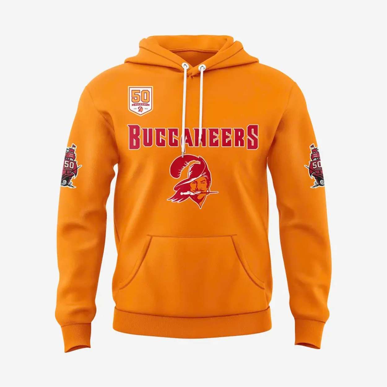 The “50 YEARS” patch and bold typography speak to more than sport—they echo community pride, perseverance, and the cultural impact of football in Florida. This hoodie is a wearable chronicle of passion, progress, and pirate spirit.