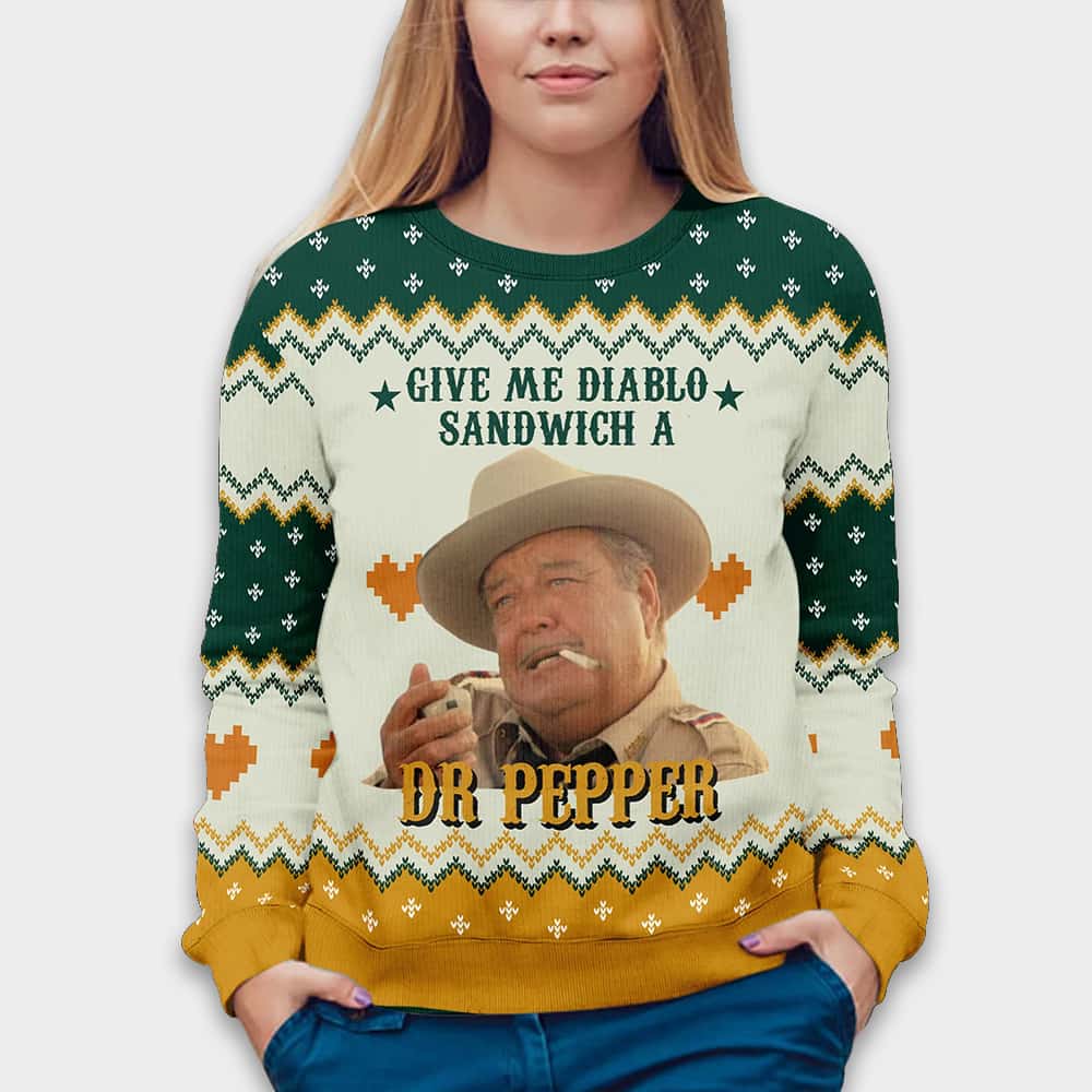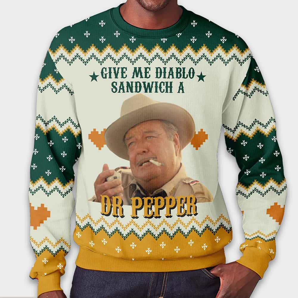 Buford T Justice Diablo Sandwich A Dr Pepper Ugly Christmas Sweater – Pop Culture Classic