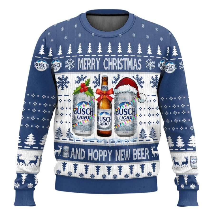 Busch Light Merry Christmas And Hoppy New Beer Ugly Christmas Sweater