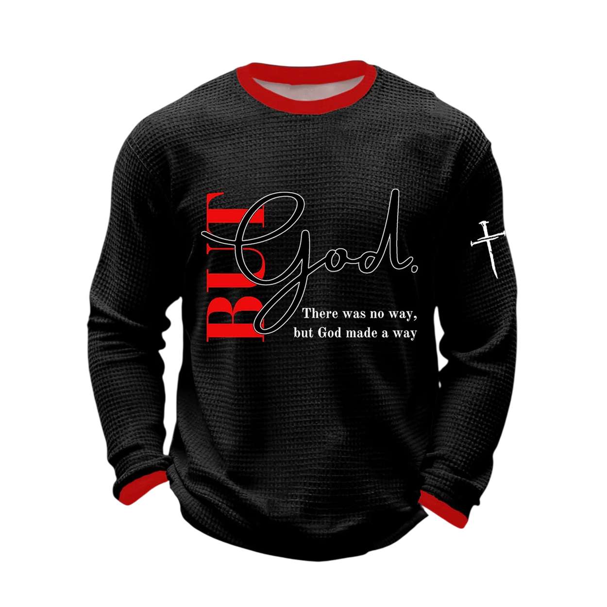 Wear a message of hope with the But God There Was No Way But God Made A Way Waffle Print Casual T-Shirt. Inspired by real-life resilience and spiritual conviction, this design speaks to those who’ve faced the impossible and found strength through divine intervention and unwavering faith.