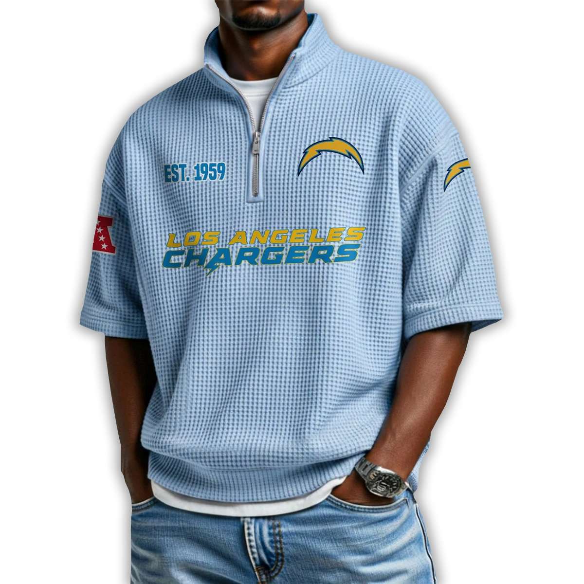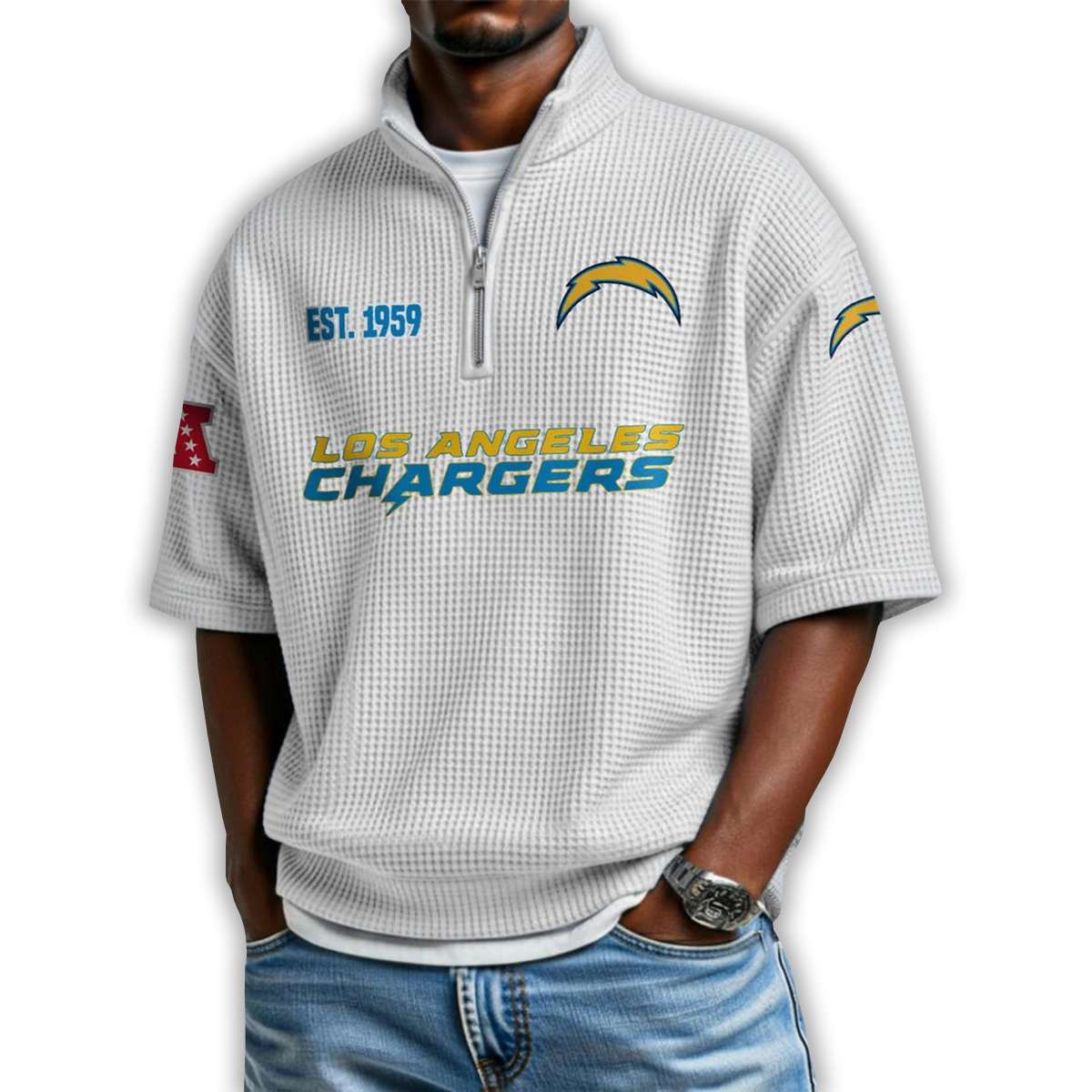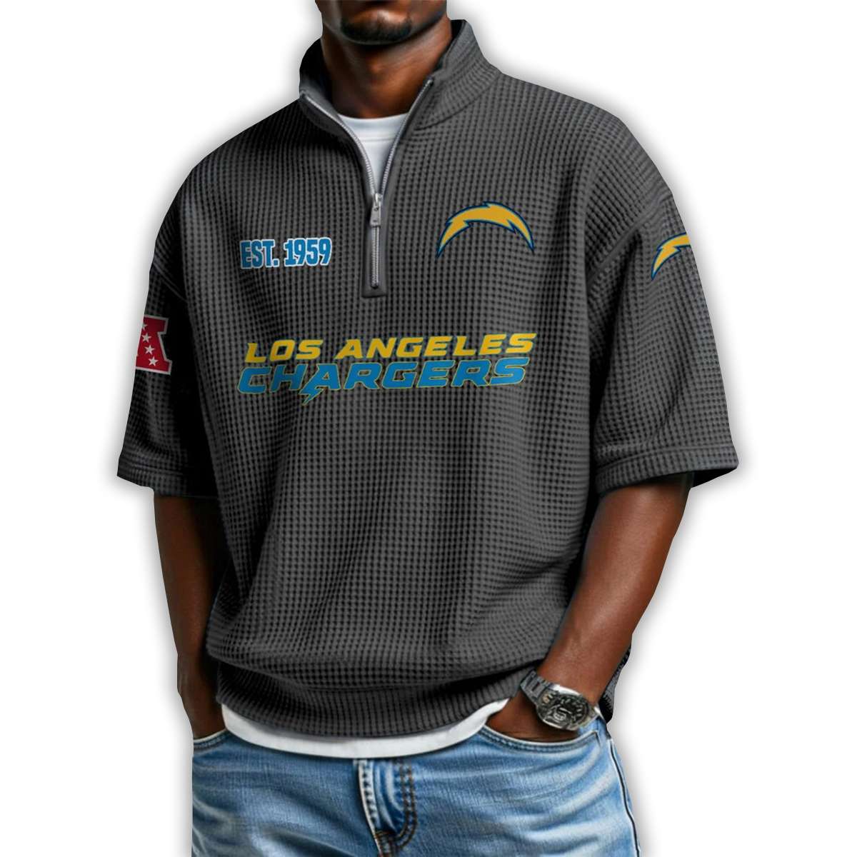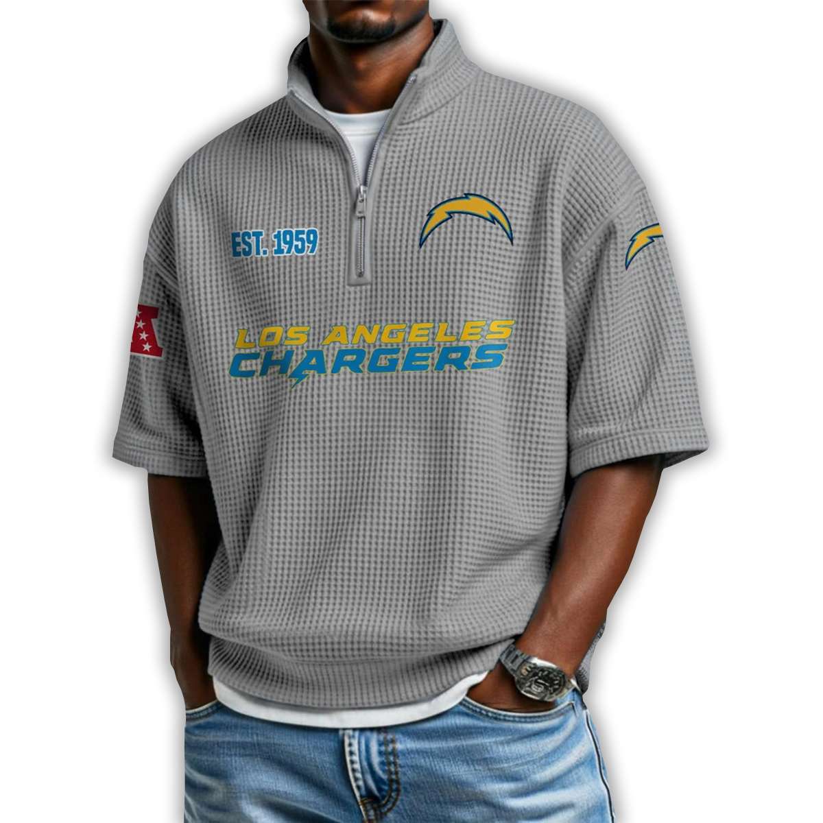 Show your Southern California pride with the Chargers Est 1959 Waffle Stand Collar Half Zip Polo Shirt. Featuring bold graphics and historical nods to iconic players and pivotal moments, this shirt connects fans to the enduring legacy of Los Angeles football and its community impact.