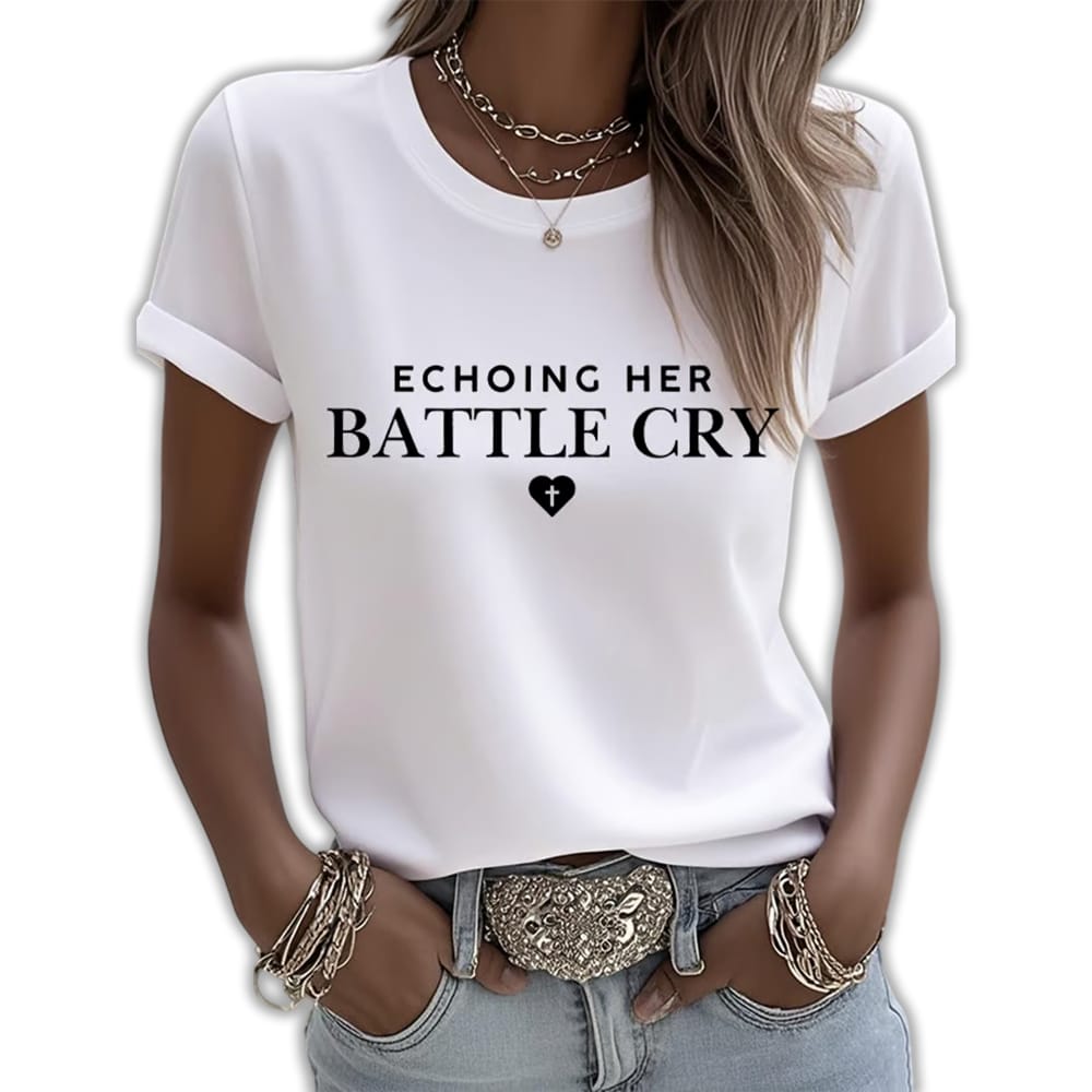 When Charlie Kirk was shot while speaking at Utah Valley University, many saw not only a violent act but a test of commitment to free speech. This shirt’s declaration, “Echoing Her Battle Cry,” resonates with those who believe in standing firm even when threatened.