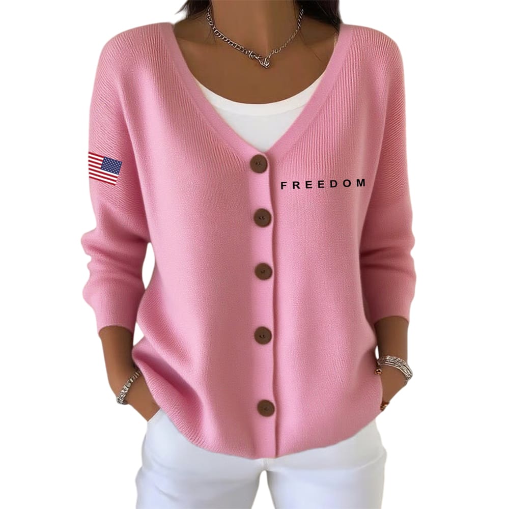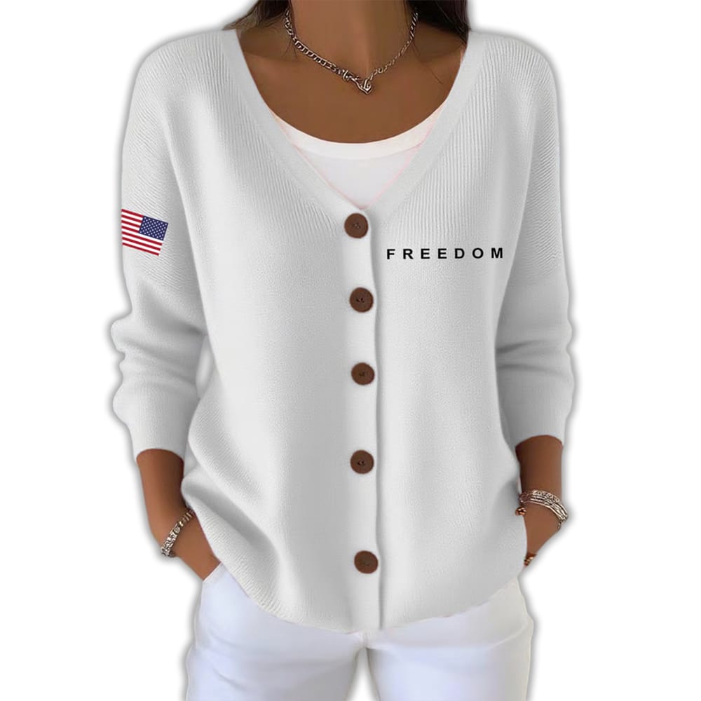 The Charlie Kirk Freedom American Flag Casual Cardigan embodies a strong message of liberty and individuality. With the American flag on the sleeve and the word ‘FREEDOM’ prominently displayed, this cardigan is a bold statement of personal values and independence, inspired by real-world events.