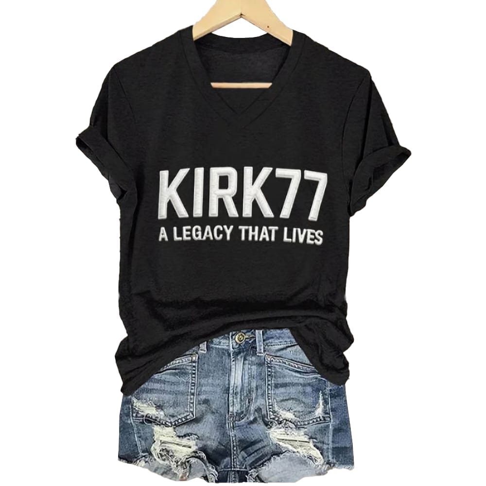 The Charlie Kirk Kirk77 A Legacy That Lives Shirt commemorates the influential conservative activist Charlie Kirk, who tragically lost his life during a public speaking event at Utah Valley University. His assassination shocked the nation and sparked widespread conversation about the dangers of political violence and the importance of safe, respectful discourse.