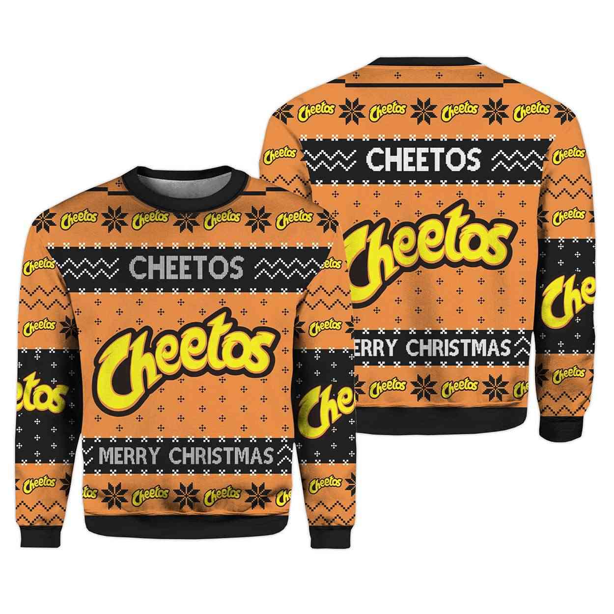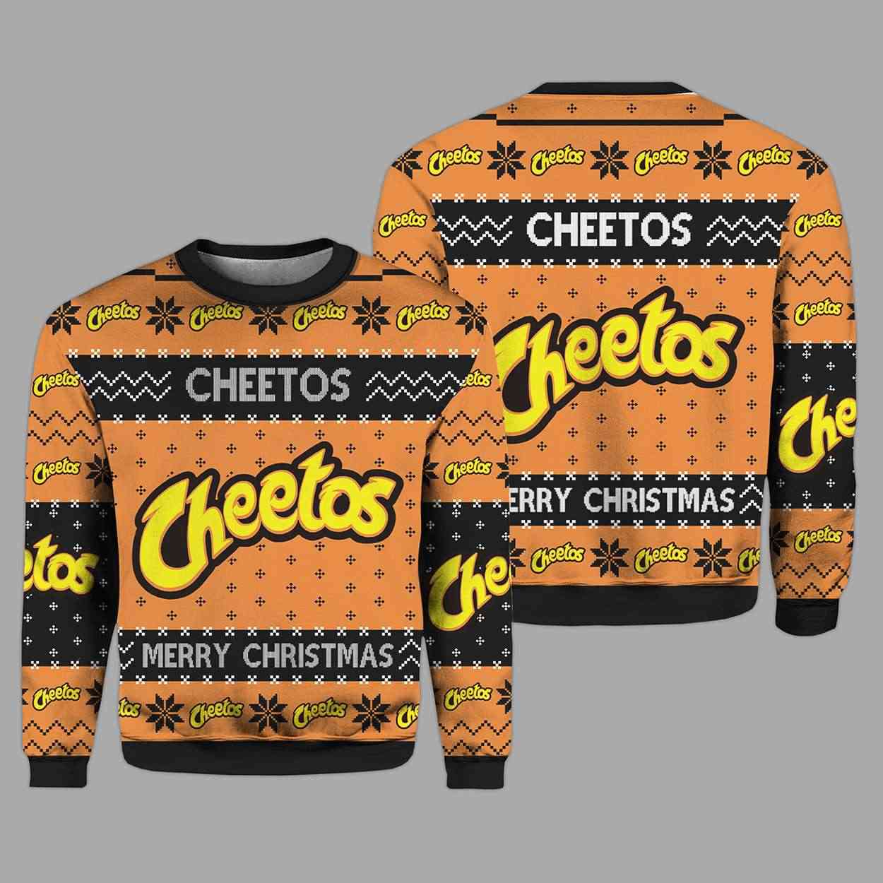Turn heads this season with the Cheetos Snack Ugly Christmas Sweater. Featuring Chester Cheetah flair, bold branding, and festive patterns, this design blends pop culture nostalgia with holiday humor—perfect for fans of iconic snacks and playful fashion statements.