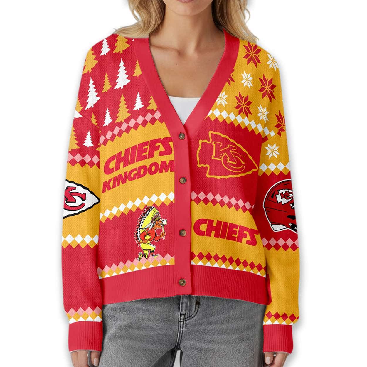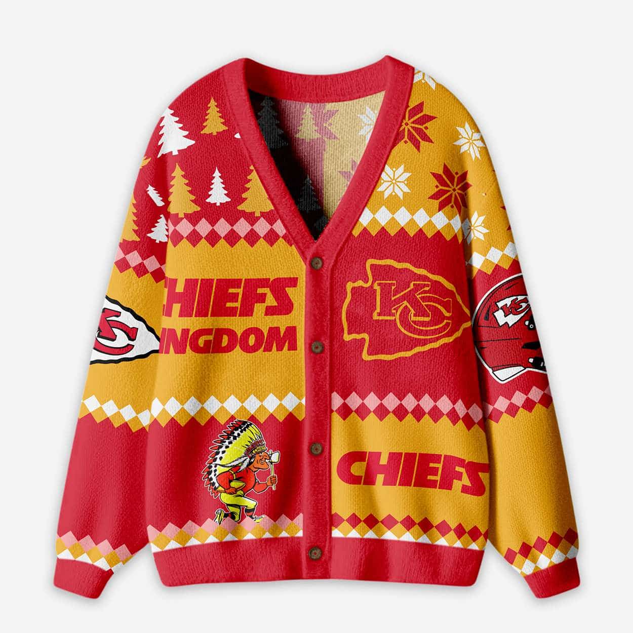 Wrap yourself in the legacy of Kansas City with the Chiefs Kingdom Knitted Christmas Cardigan. Featuring iconic imagery, bold colors, and historical nods to the team’s enduring spirit, this festive wear connects fans to culture, community, and unforgettable moments.