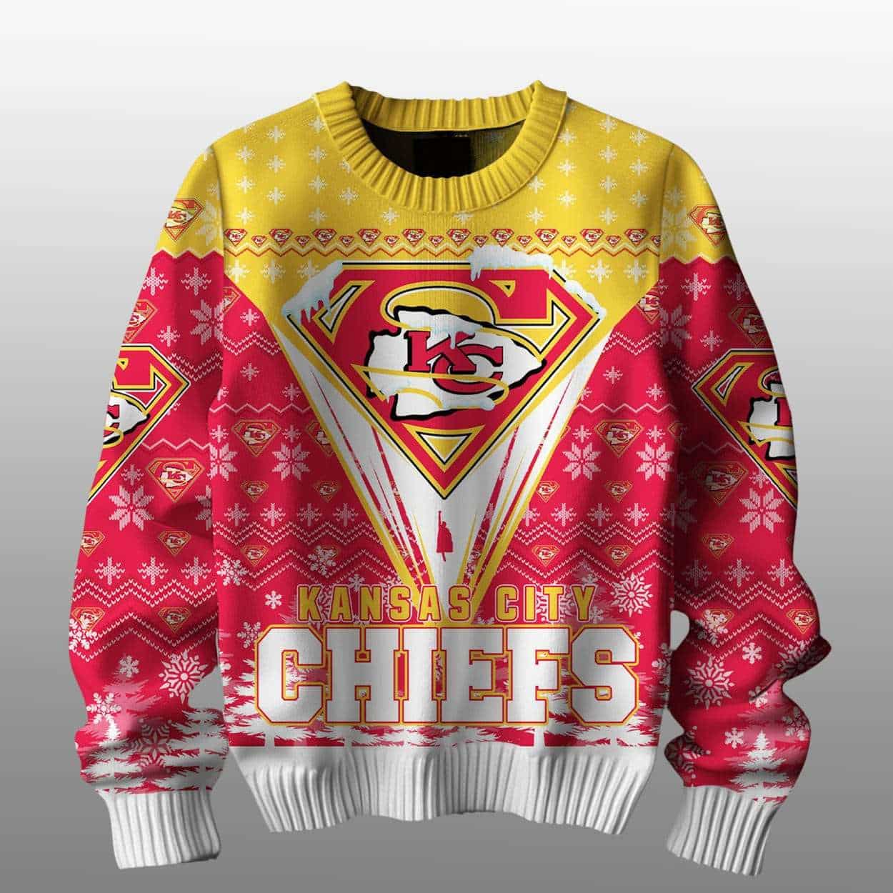Step into the holiday season with the Chiefs Merry Super Christmas Ugly Sweater. Featuring a bold Superman-style crest and Kansas City’s iconic football legacy, this festive design honors unforgettable plays, legendary athletes, and the enduring pride of Chiefs Kingdom.