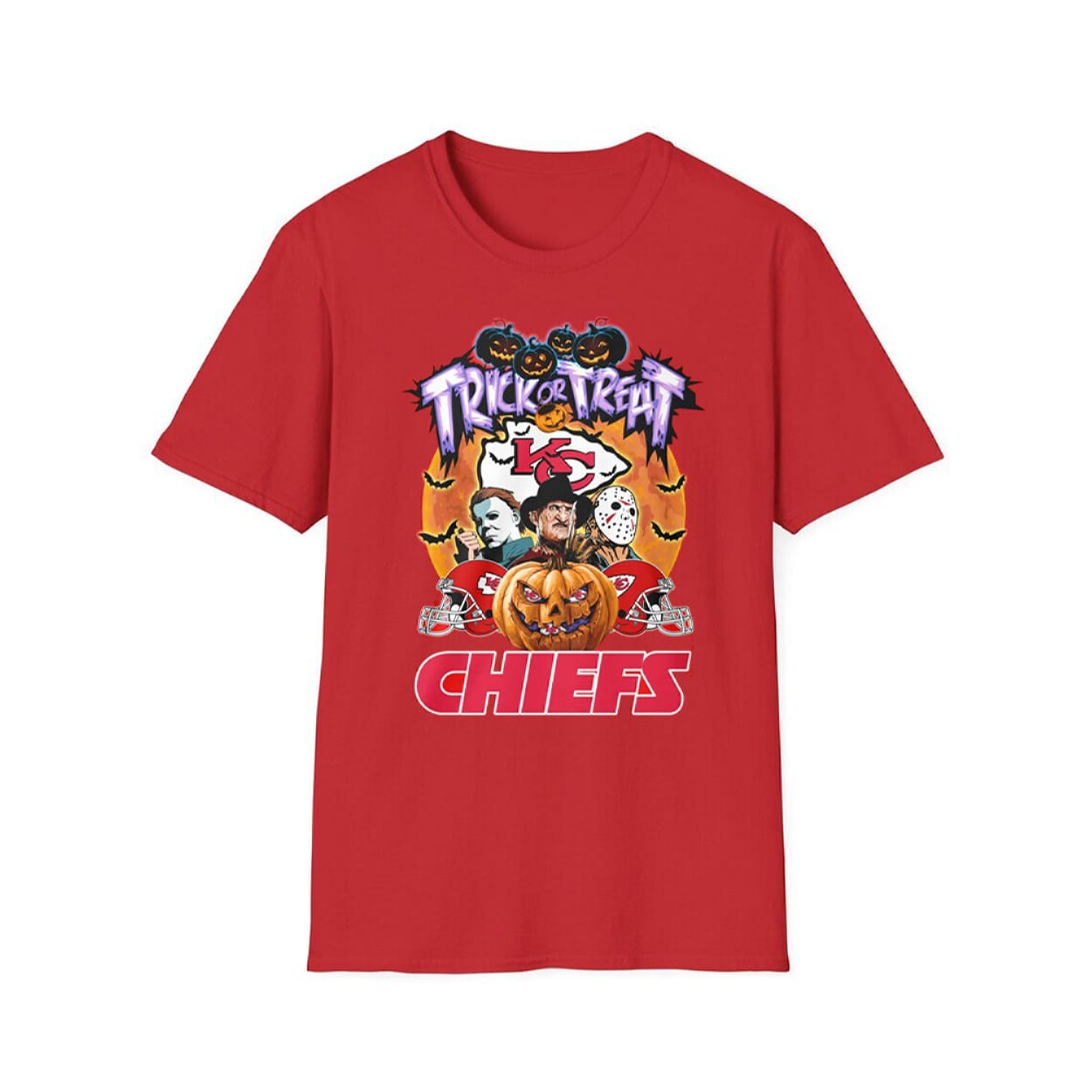 Chiefs Trick or Treat Horror Film Shirt – Football Meets Classic Horror Icons