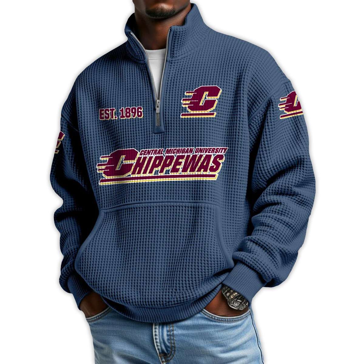 Show your pride in Central Michigan’s football legacy with the Chippewas Football Est 1896 Waffle Stand Collar Half Zip Sweatshirt. Featuring bold team graphics and historic nods, this piece connects fans to iconic players, cultural milestones, and the enduring spirit of Mount Pleasant.