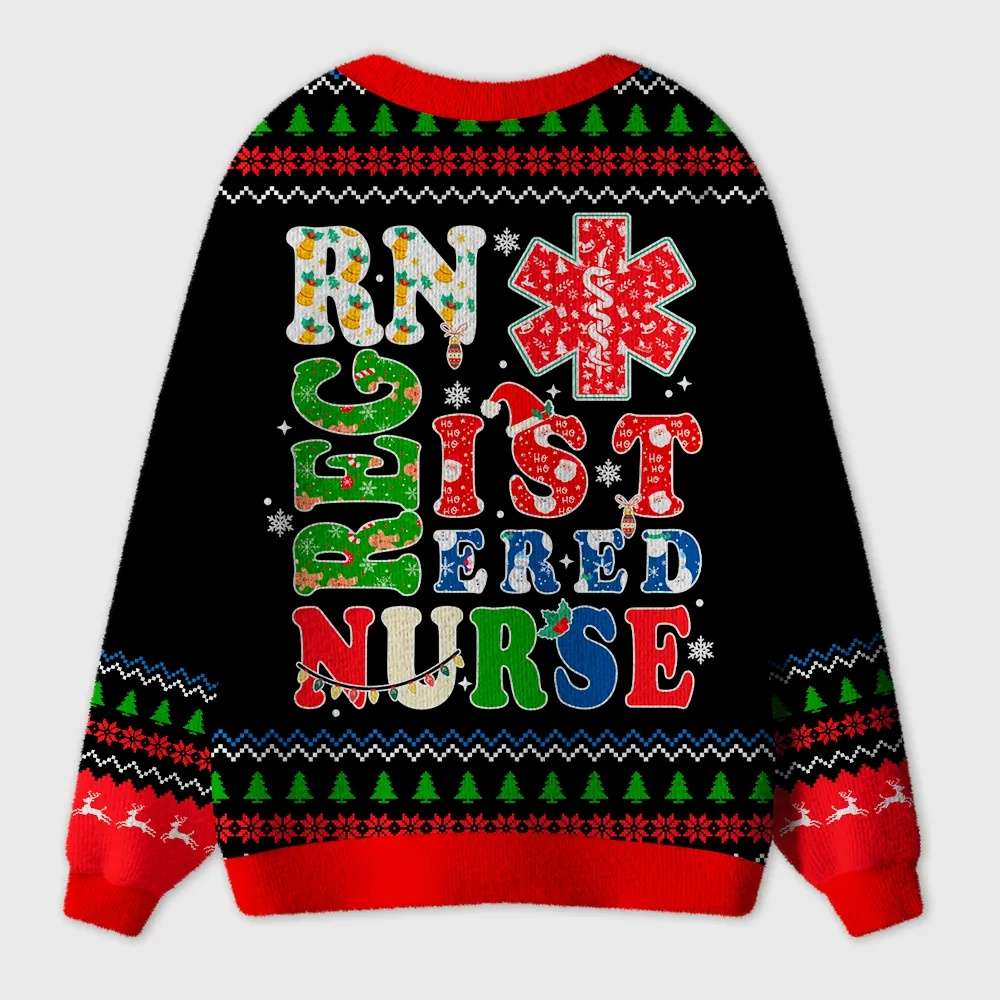 Bring warmth and purpose to your wardrobe with our Christmas Vibe Registered Nurse Ugly Cardigan Sweaters. Designed for healthcare heroes, this festive knit blends holiday cheer with medical pride, honoring the tireless spirit of RNs during the season of giving.