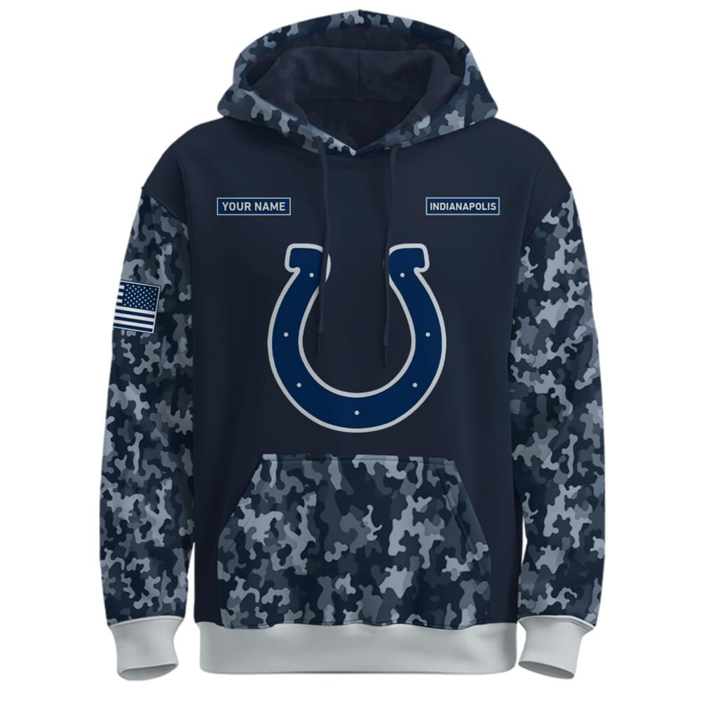 In Indianapolis, the Colts are not just a sports team; they are an integral part of the city’s identity. The Colts’ blue and white colors seamlessly complement the Navy’s classic style. This product bridges two pillars of strength, merging the dynamic energy of the Colts with the unwavering fortitude of the Navy. It’s more than just a hoodie—it’s a statement about American perseverance and the bond between sports and service.