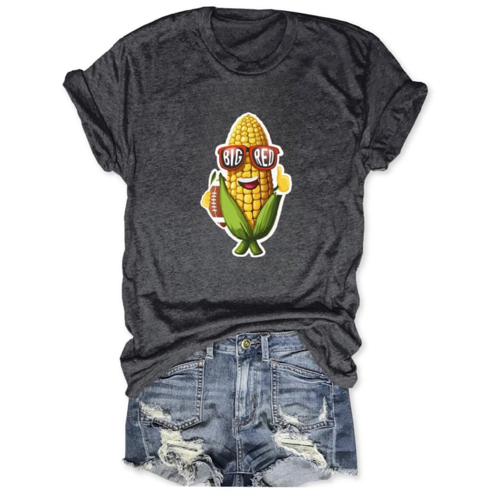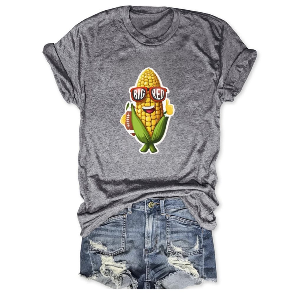 Perfect for fans who thrive on tradition, the shirt is more than apparel—it’s storytelling on fabric. The grinning corn character mirrors the humor and resilience of the Husker community, where football unites neighbors, families, and alumni under the unmistakable banner of “Go Big Red.”