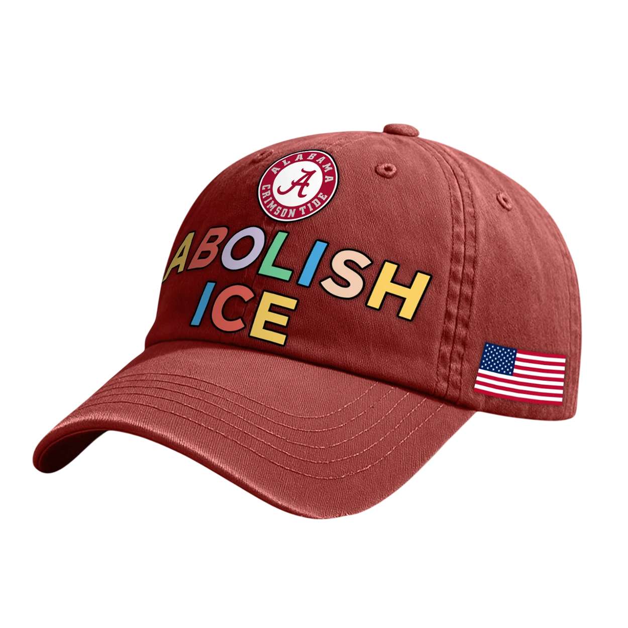 This hat threads together two powerful symbols: Alabama’s Crimson Tide legacy and the nationwide call to dismantle ICE. The embroidered “A” anchors regional pride, while the vibrant “ABOLISH ICE” text amplifies voices demanding systemic change.