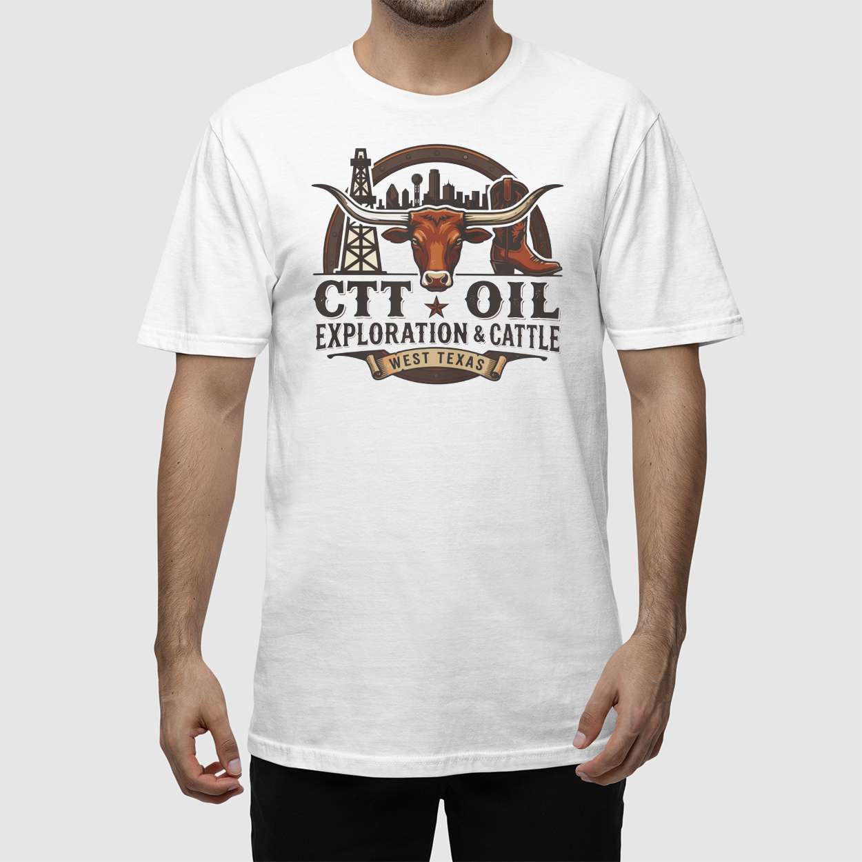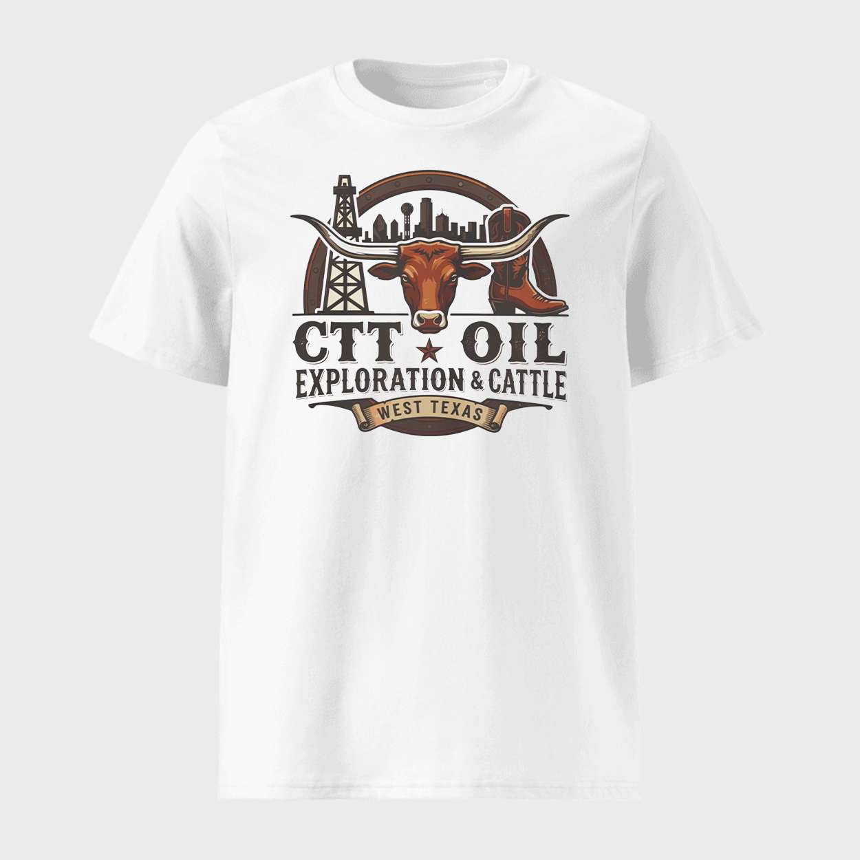 The CTT Oil Exploration And Cattle Shirt captures the rugged spirit of West Texas—where longhorns roam and derricks rise. A bold tribute to frontier grit, economic legacy, and the people who shaped the land through industry, ranching, and resilience.