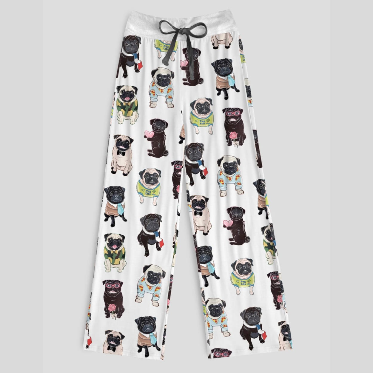 Pugs have long held a place in royal courts and pop culture, from Chinese emperors to European aristocracy. Their expressive faces and compact stature made them symbols of loyalty and humor—traits now captured in this vibrant, character-rich pant design.