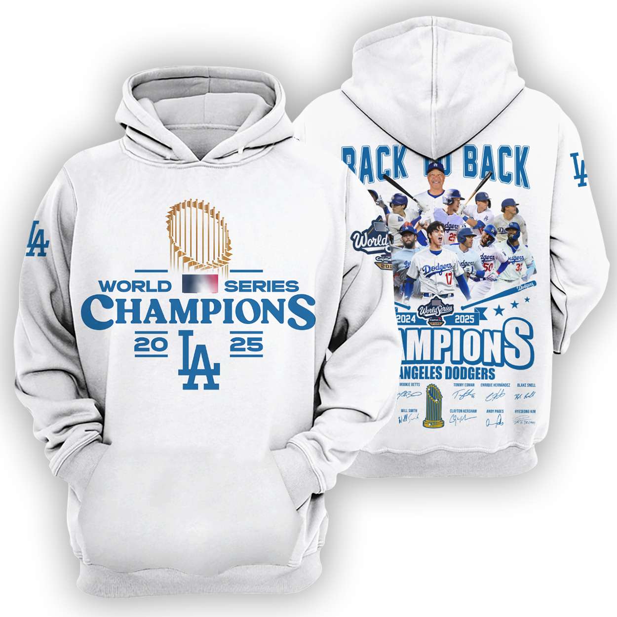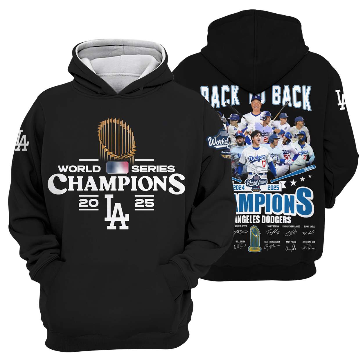 Relive the Dodgers’ legendary 2025 World Series run with this Dodgers Back To Back World Series Champions 2025 Signature Hoodie. Featuring player autographs and imagery from the wild Game 6 double play that stunned the Blue Jays, this hoodie captures baseball history in vivid detail.