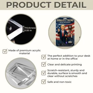 The Donald Trump 47th President Acrylic Plaque Block has garnered attention due to its release following the historic 2024 election, commemorating Donald J. Trump’s inauguration as the 47th President of the United States.