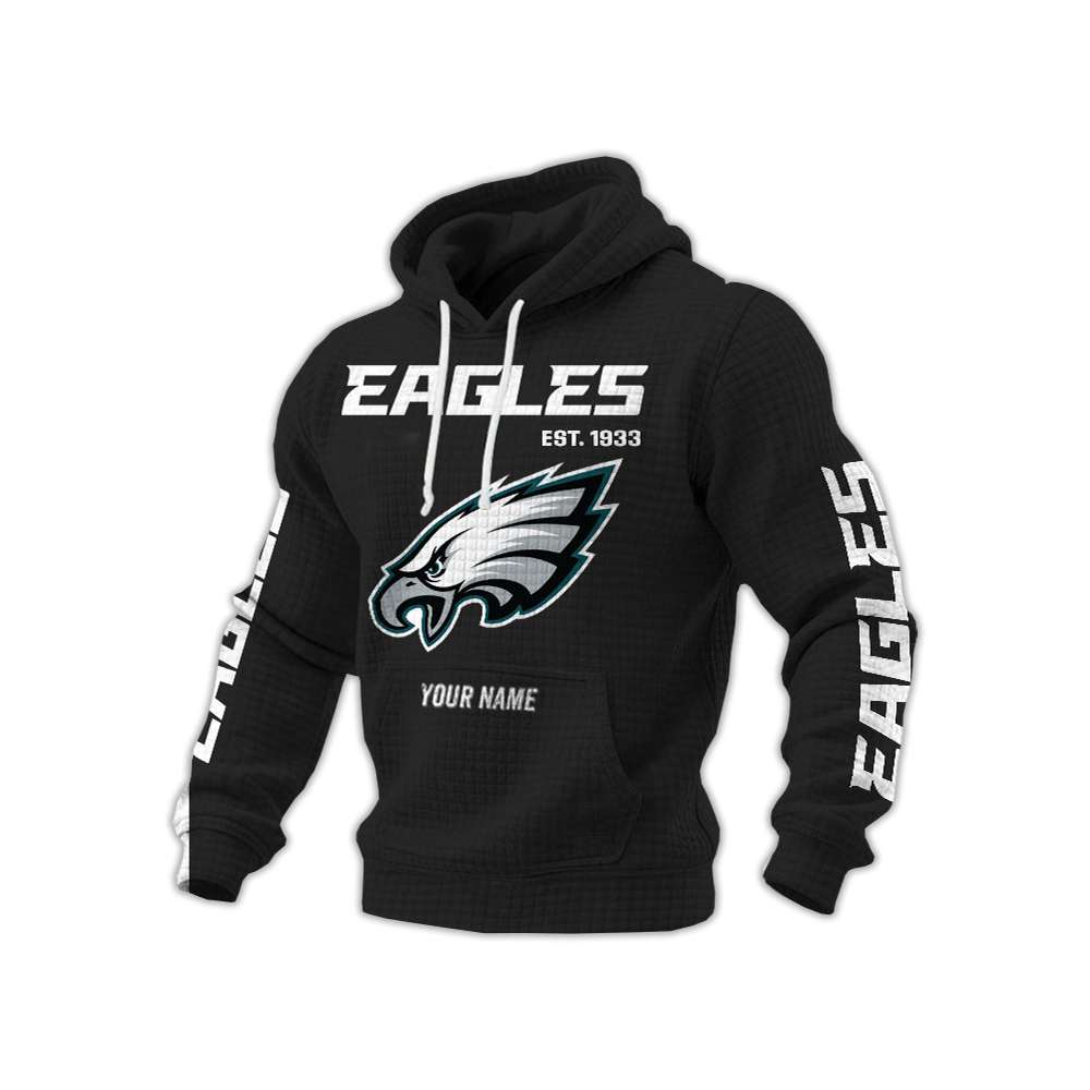 Honor the legacy of Philadelphia football with the Eagles Est 1933 Personalized Waffle Hoodie. Featuring bold graphics and custom name options, this hoodie connects fans to iconic players, historic grit, and the enduring spirit of a city that never backs down.