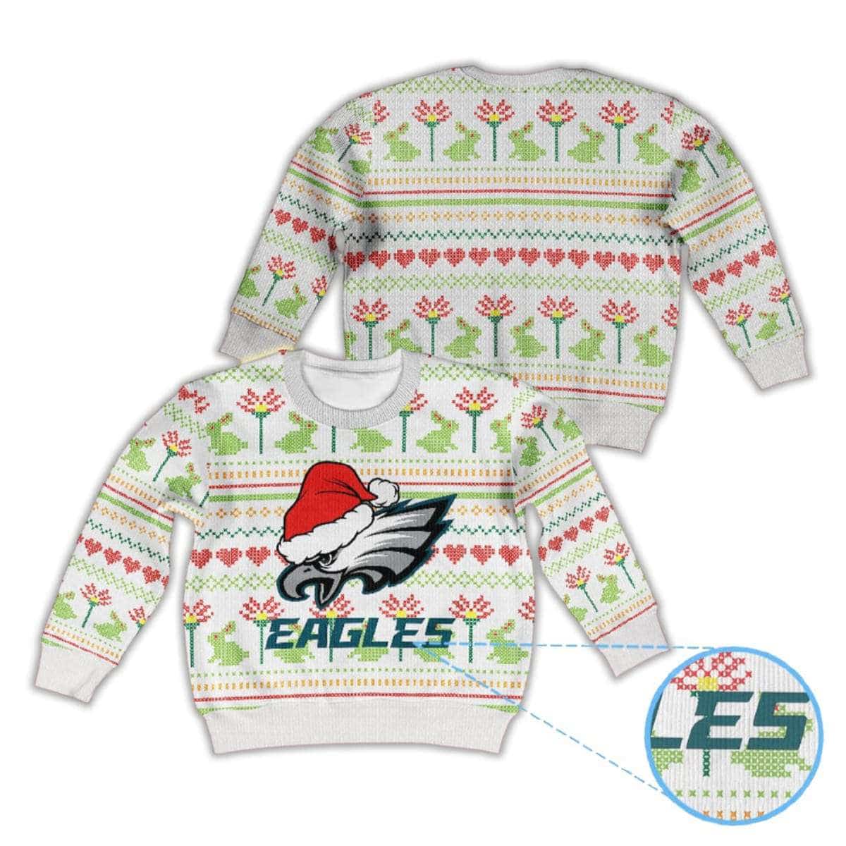 Eagles Logo In Santa Hat Ugly Christmas Sweater – Spirit, Style, and Winter Pride
