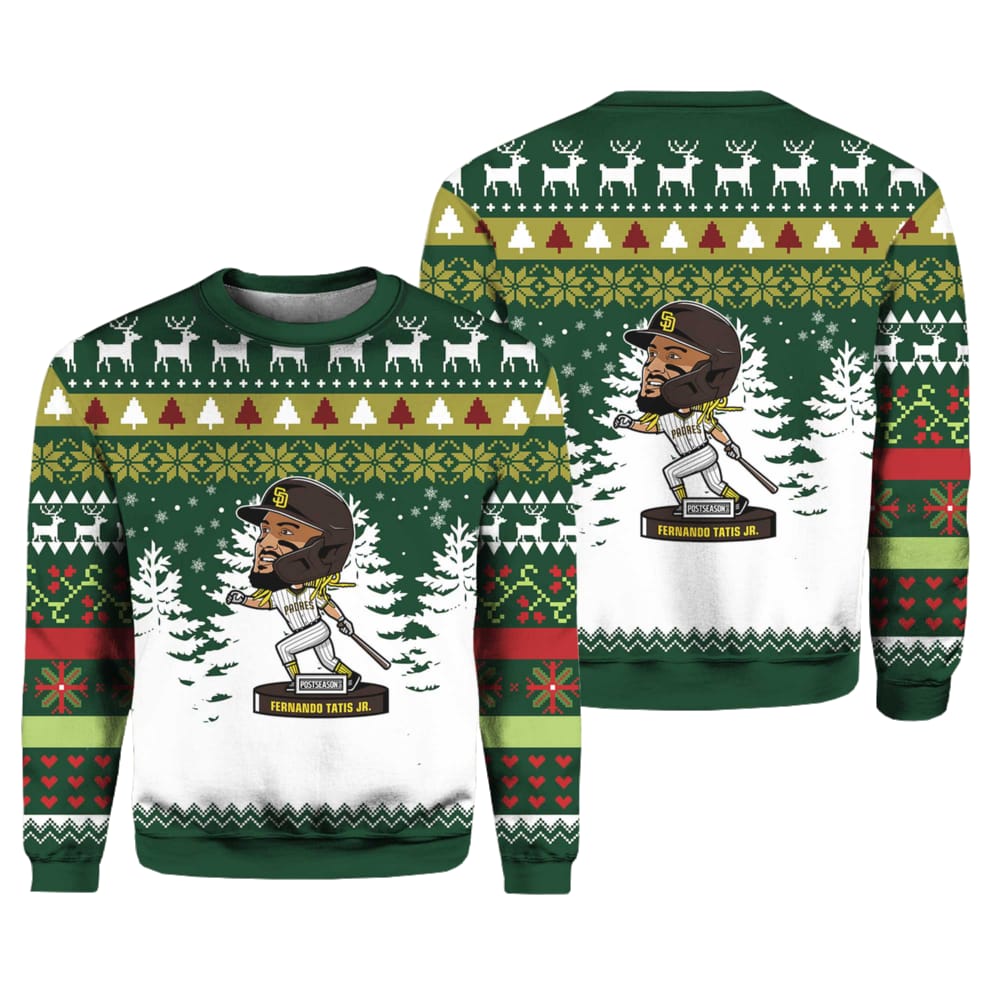 Ignite your holiday spirit with the Fernando Tatis JR. Postseason Padres Ugly Christmas Sweater! Featuring the San Diego Padres’ electrifying star in a bold postseason pose, this festive sweater connects baseball passion with winter cheer. A must-have for Padres fans celebrating team pride and unforgettable baseball history in cozy seasonal style.
