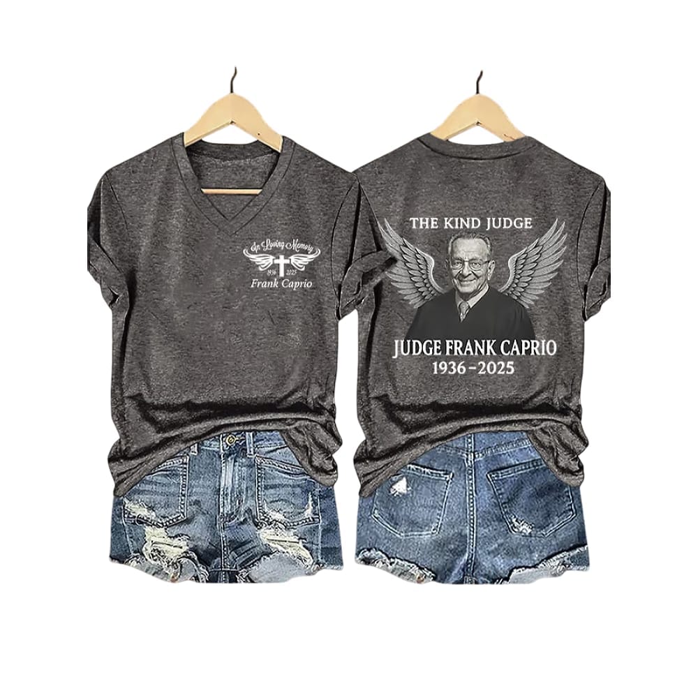 Judge Caprio’s life spanned 88 remarkable years. After announcing his pancreatic cancer diagnosis, he continued to inspire through transparency and faith, even asking supporters to pray for his recovery in heartfelt final messages from his hospital bed. His brave journey, openness, and optimism resonated with millions worldwide—this shirt brings that powerful human story to life.
