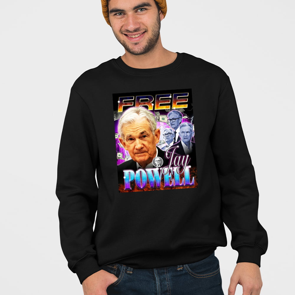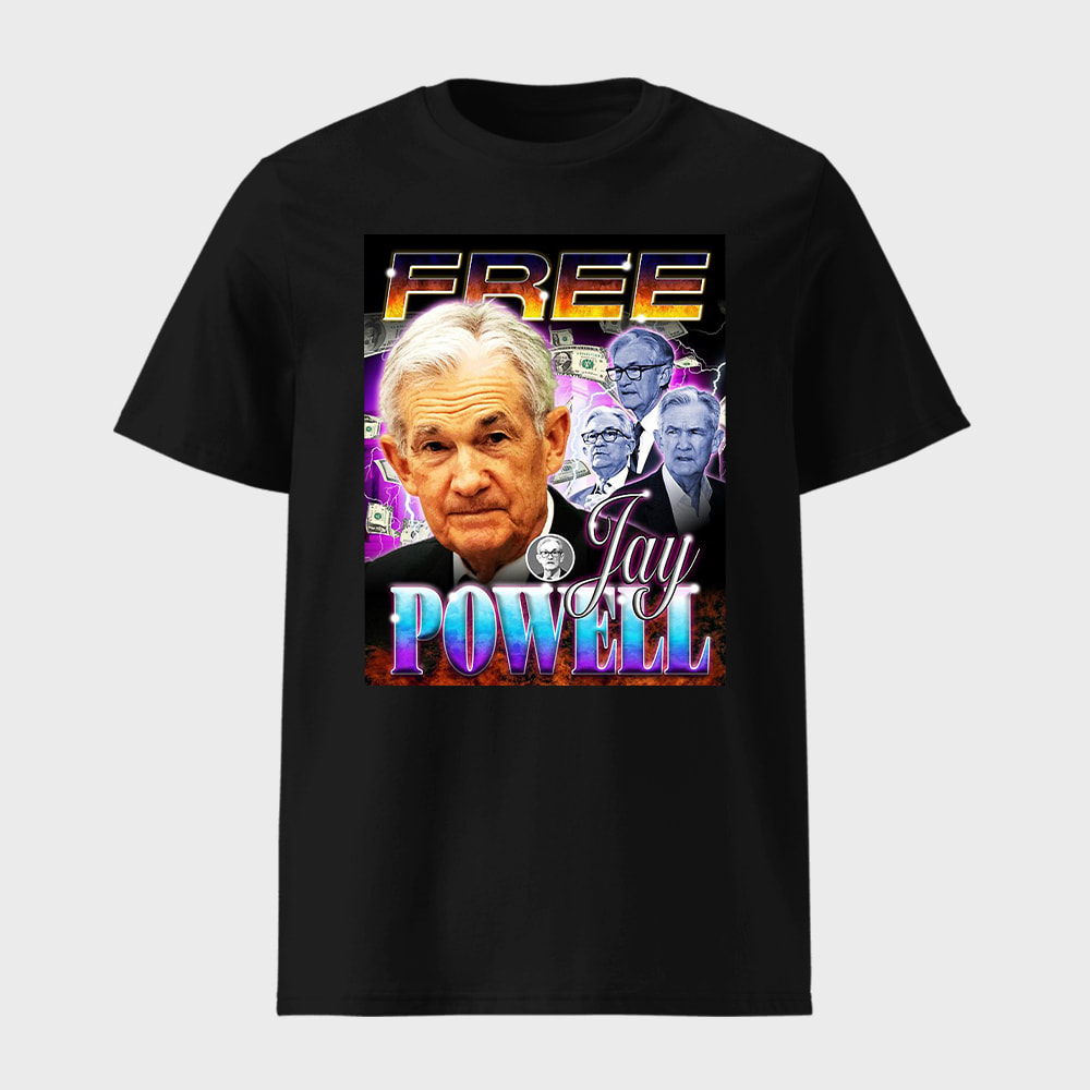 Following reports of a criminal investigation into the Fed’s $2.5bn headquarters renovation and subsequent grand jury subpoenas, the “Free Jay Powell” movement has taken the finance world by storm. This shirt captures that high-stakes moment, blending political commentary with a vintage streetwear aesthetic.