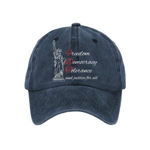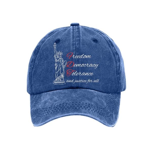 Complete your look by pairing it with matching joggers or hoodies to create a cohesive, impactful statement. With every wear, the “Freedom Democracy Tolerance And Justice For All Print Baseball Cap” serves as a badge of honor, reflecting your dedication to the values that truly matter.