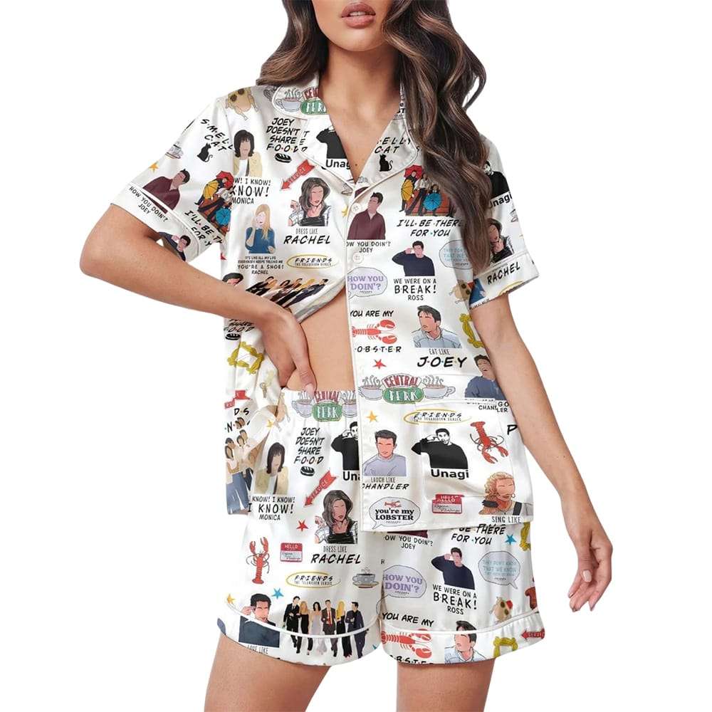 Friends Tv Series Satin Short Pajamas – Iconic Moments, Legendary Quotes