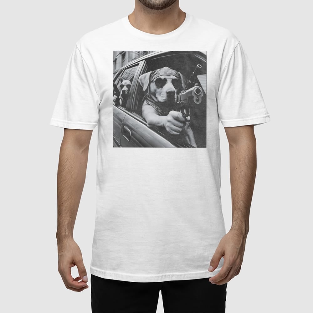 This design draws inspiration from meme culture, where animals, particularly dogs, have been central to online trends. From the infamous “Bad Boys” meme to viral content involving dogs in tough-guy roles, this shirt is a nod to the digital era that has given rise to a unique blend of comedy and pop culture. It offers a humorous commentary on the playful subversion of tough-guy stereotypes, reminding us not to take life too seriously.
