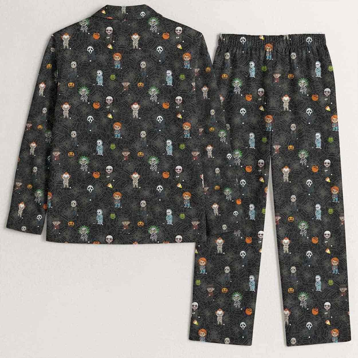 This pajama set captures beloved horror icons in an unexpected light—swinging golf clubs instead of chasing shadows. From masked villains to mischievous dolls, each miniature character reflects decades of pop-culture fascination with fright, humor, and rebellion against fear.
