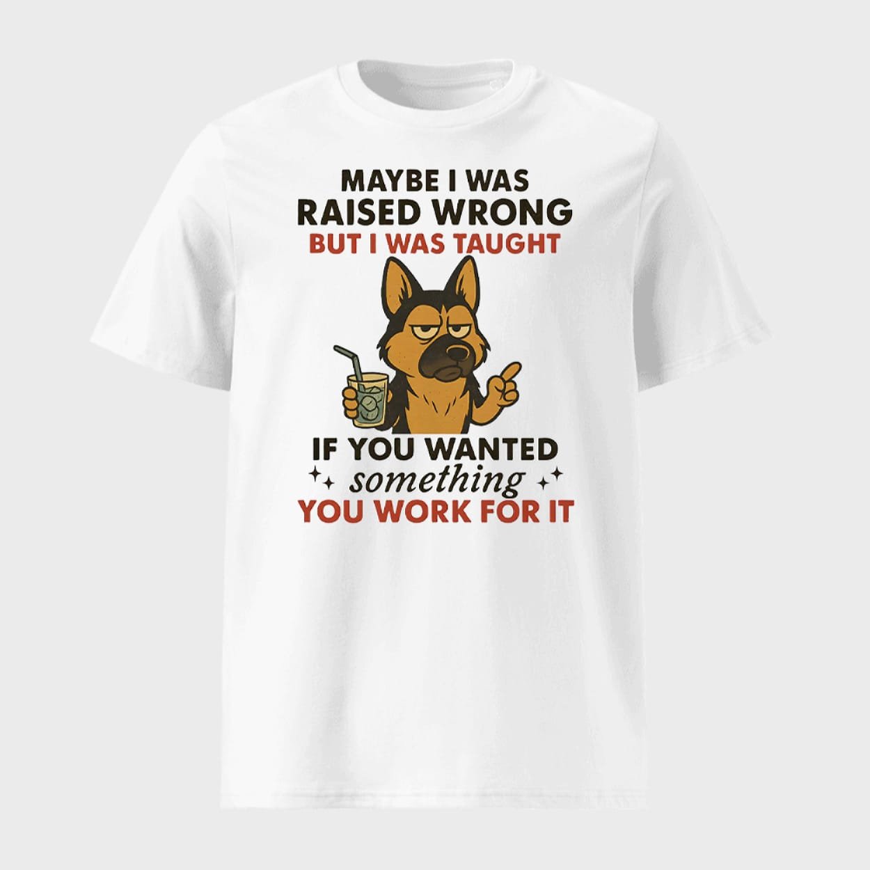 Showcase your no-nonsense mindset with this German Shepherd Dog Maybe I Was Raised Wrong Shirt. Inspired by the loyal, hardworking spirit of German Shepherds, this design humorously echoes timeless values of discipline and effort. A perfect choice for those who believe success is earned, not given — blending wit with a strong social message.