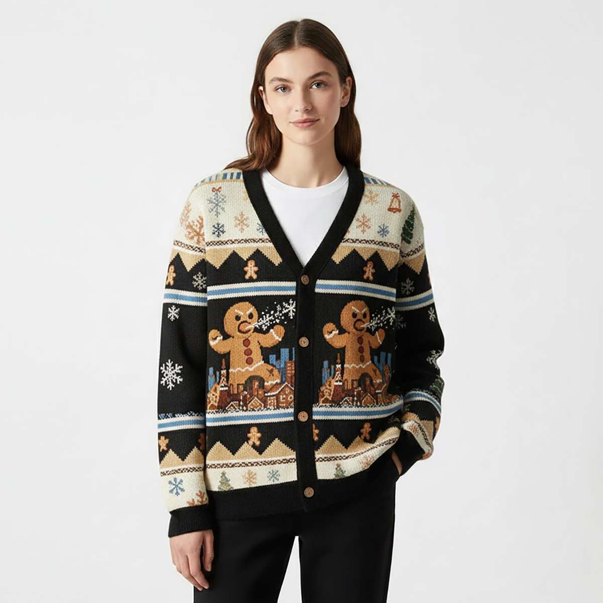 Gingerbread Monster Ugly Cardigan Sweatshirt – Whimsy Meets Winter Lore