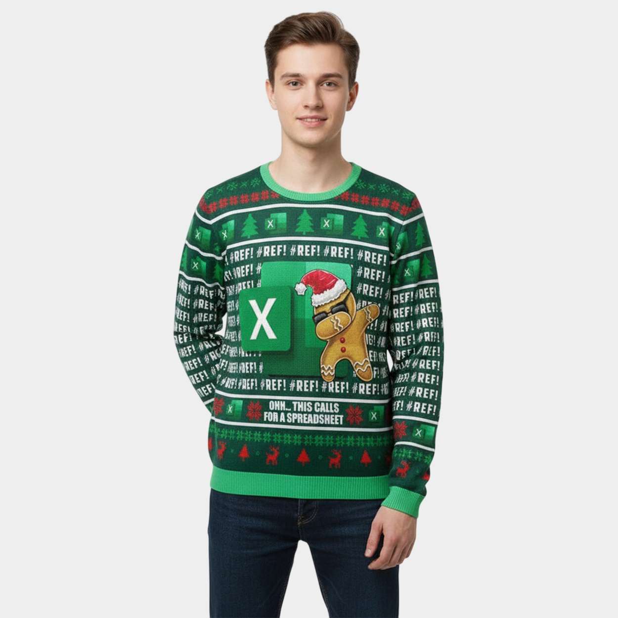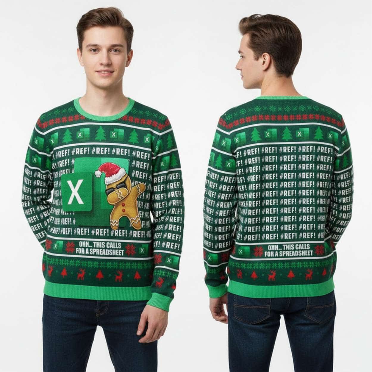 Crunch numbers with holiday flair in the Gingerbread Ohh This Calls For A Spreadsheet Christmas Ugly Sweater. Featuring Excel humor, #REF! errors, and a festive gingerbread icon, this sweater blends office culture with seasonal chaos for data lovers and meme fans alike.
