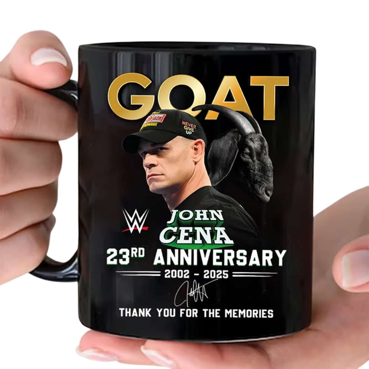 Honor 23 years of unmatched legacy with the GOAT John Cena 23rd Anniversary Mug. Featuring iconic imagery and tribute text, this mug connects fans to Cena’s legendary career, cultural impact, and the enduring values he brought to the ring and beyond.