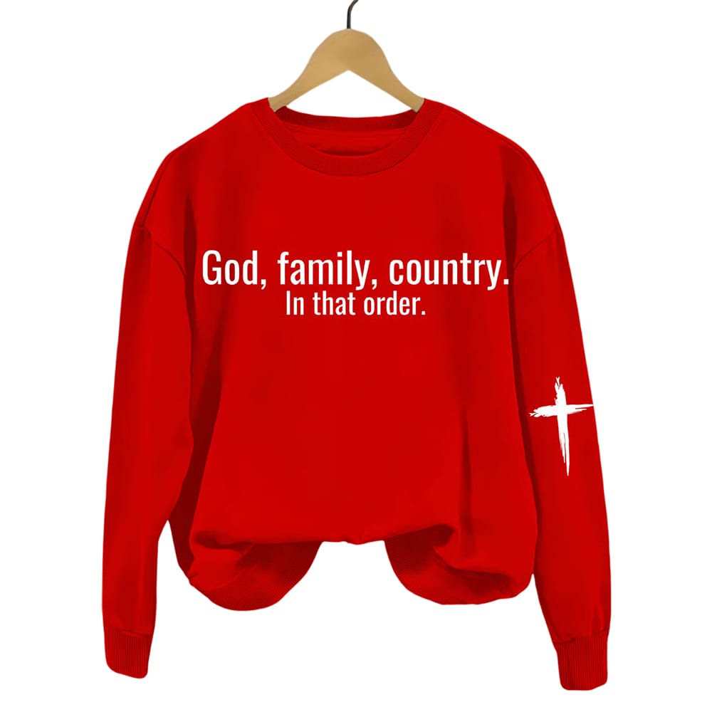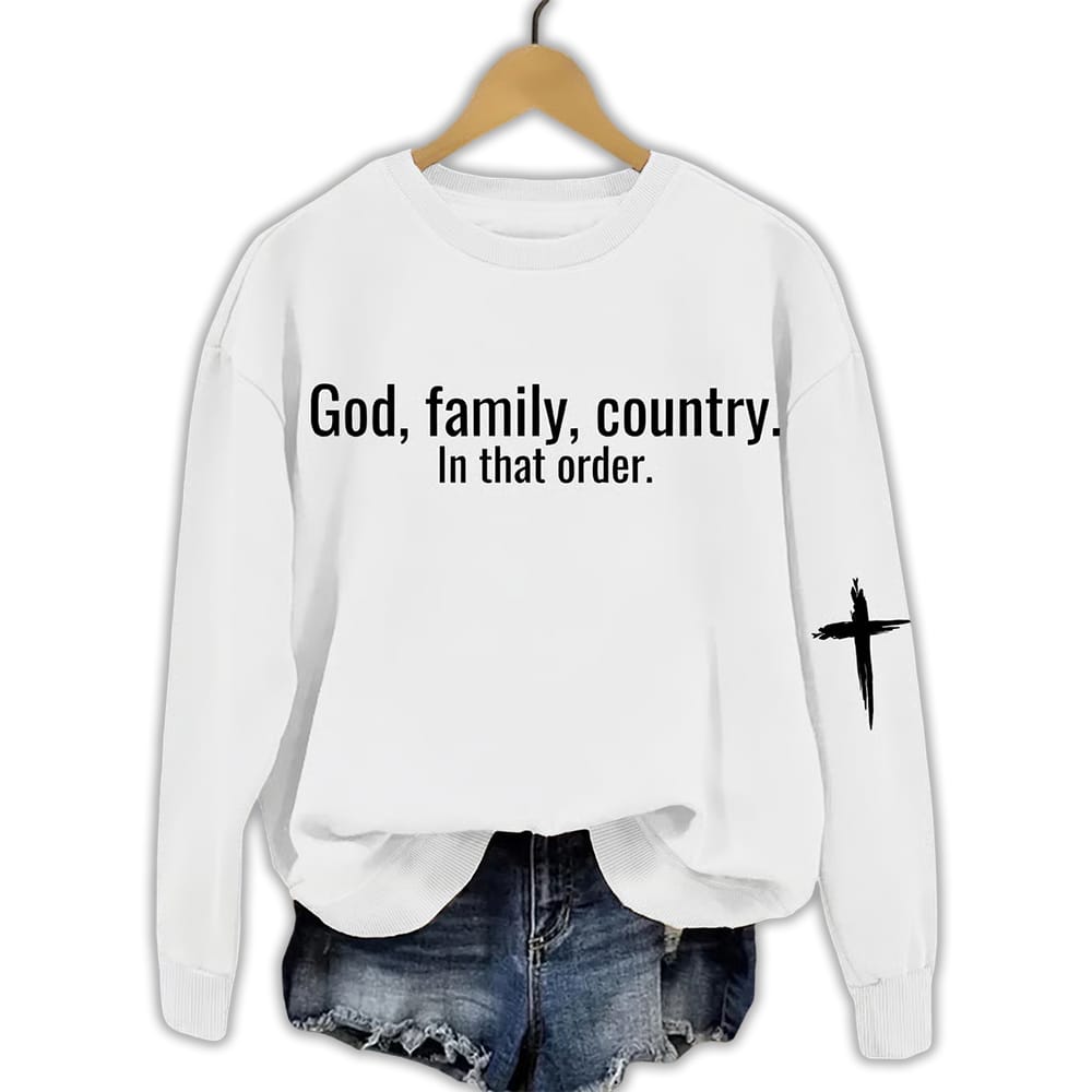 God Family Country in that order Women’s Printed Sweatshirt – A Statement of Faith and Patriotism