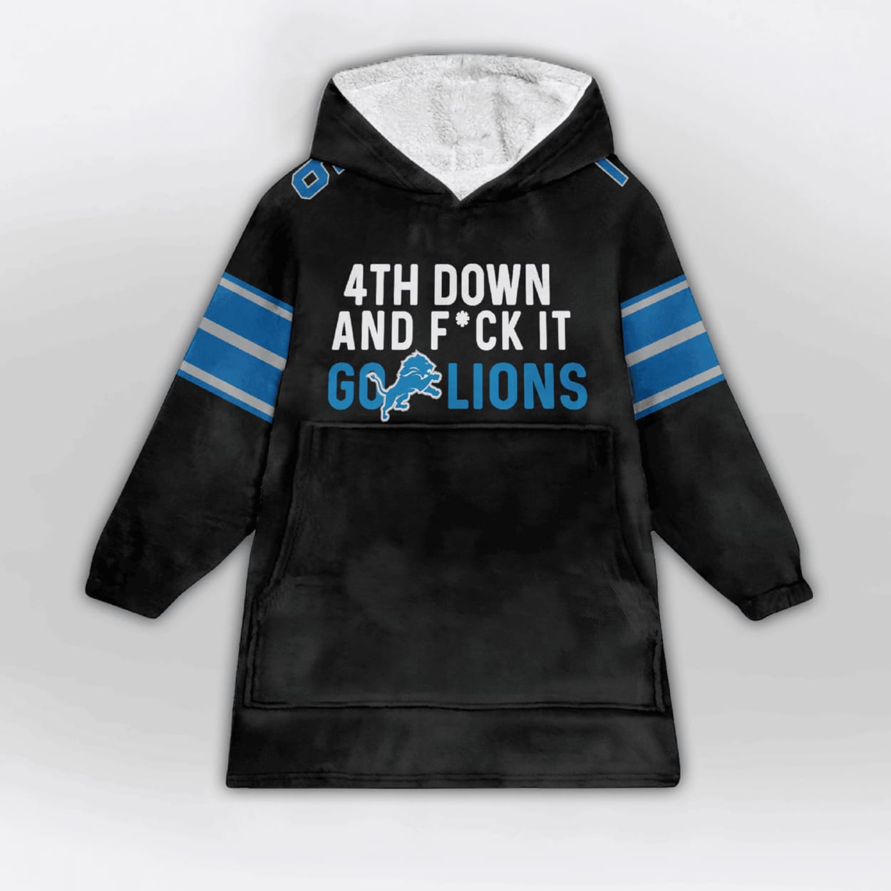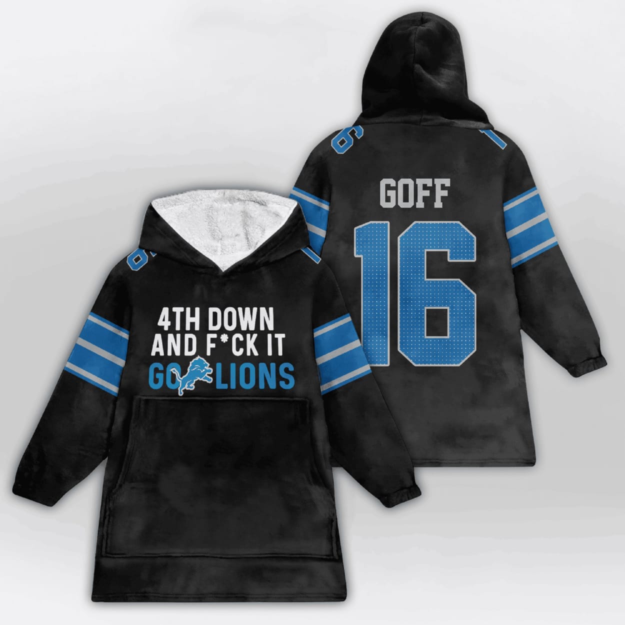 Goff 16 4th Down And Fck It Go Lions Blanket Hoodie – Bold Moves, Detroit Roots