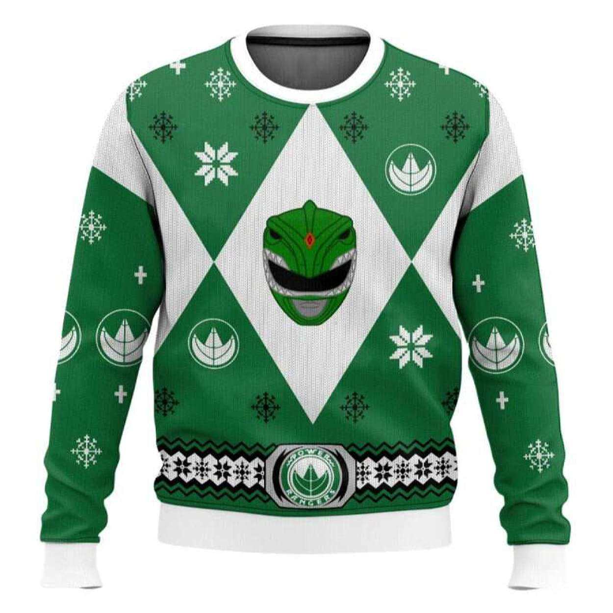 Channel the legacy of the Mighty Morphin Green Ranger with this Green Power Rangers Ugly Christmas Sweater. Featuring iconic dragon symbols, nostalgic design, and cultural influence from 90s pop history, this sweater connects fandom, unity, and holiday fun in one bold style.