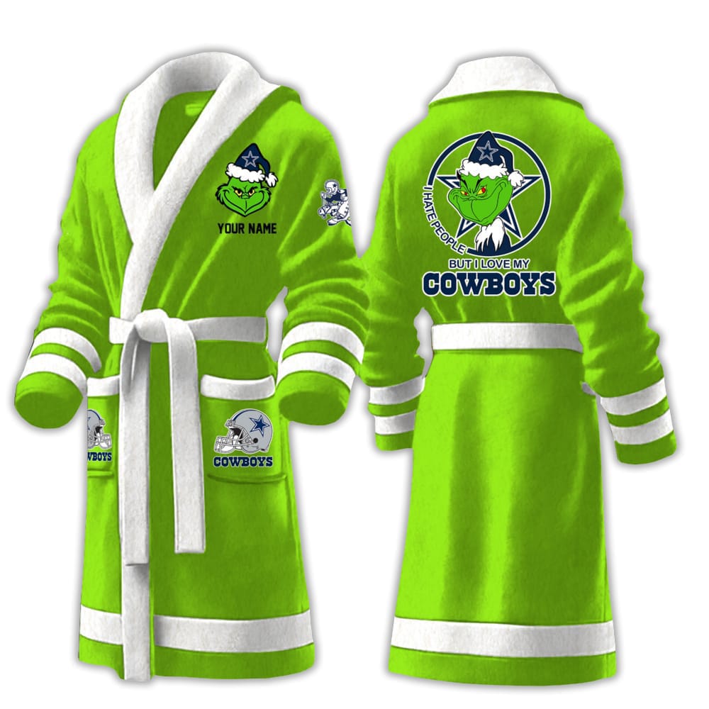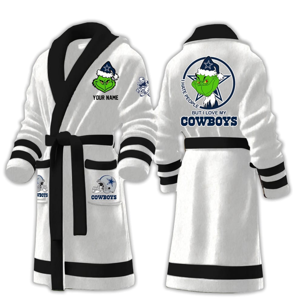 Grnch I Hate People But I Love My Cowboys Fleece Bathrobe – Bold Humor Meets Football Spirit
