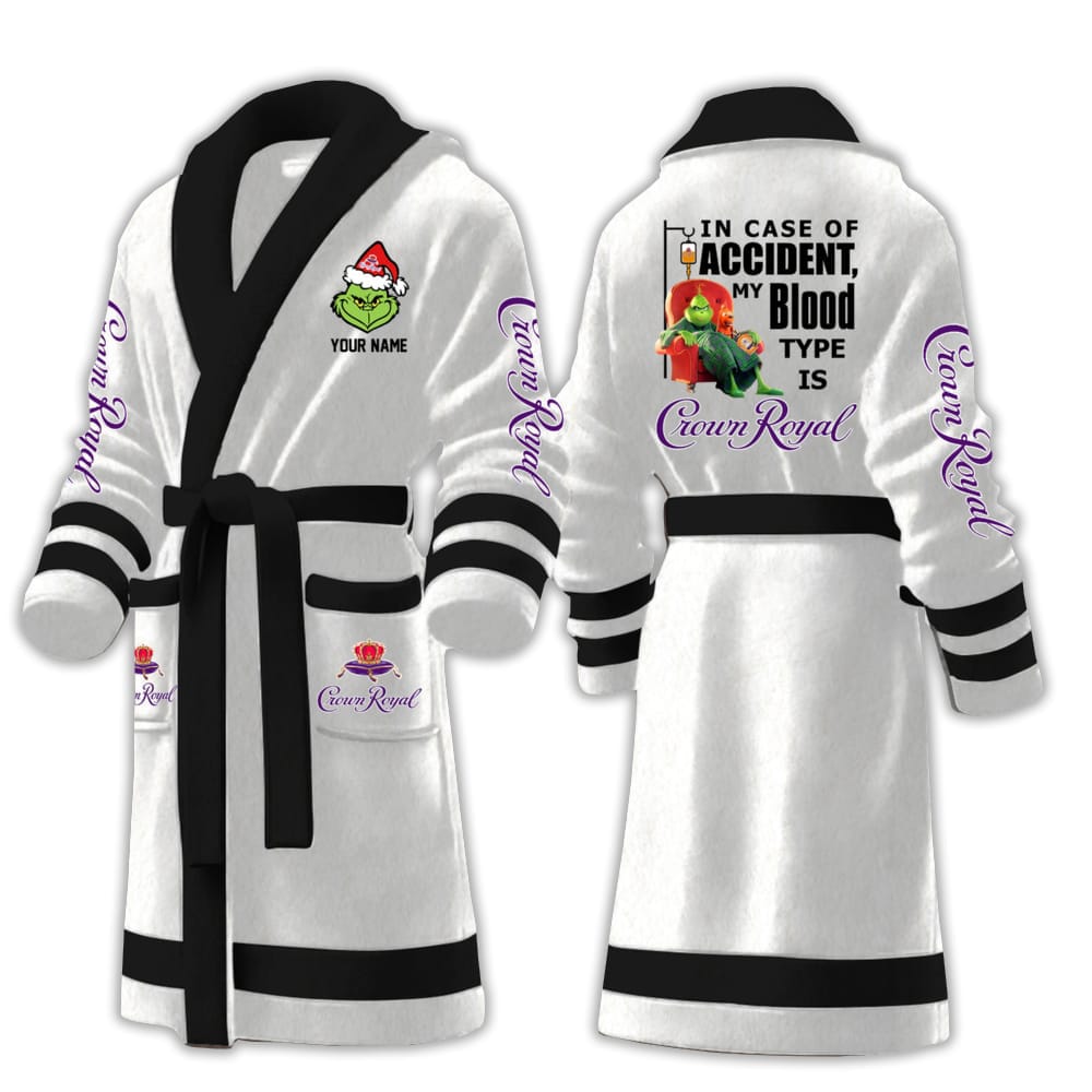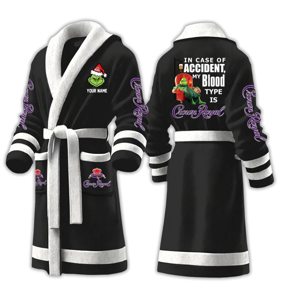 Grnch In Case Of Accident My Blood Type Is Crown Royal Fleece Bathrobe – Bold Holiday Mischief Wear