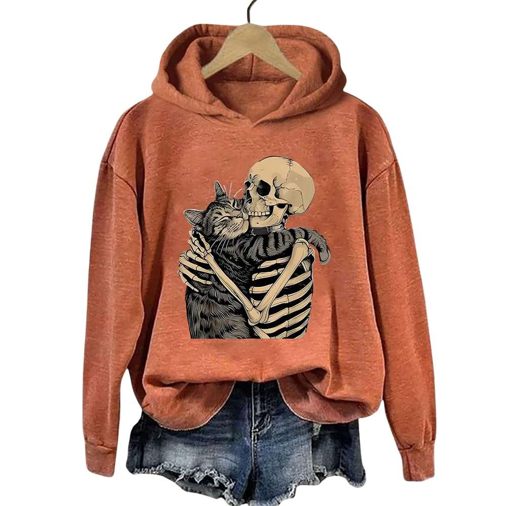 Wrap yourself in a hauntingly tender story with the Halloween Skeleton Cat Hoodie. Featuring a skeleton embracing a cat, this design echoes themes of loyalty, timeless love, and the bond between humans and animals. Perfect for those who connect fashion with meaning, history, and social storytelling. Wear it as a reminder that compassion endures beyond life itself—an expressive hoodie that fuses gothic art, cultural symbolism, and emotional depth into your wardrobe.