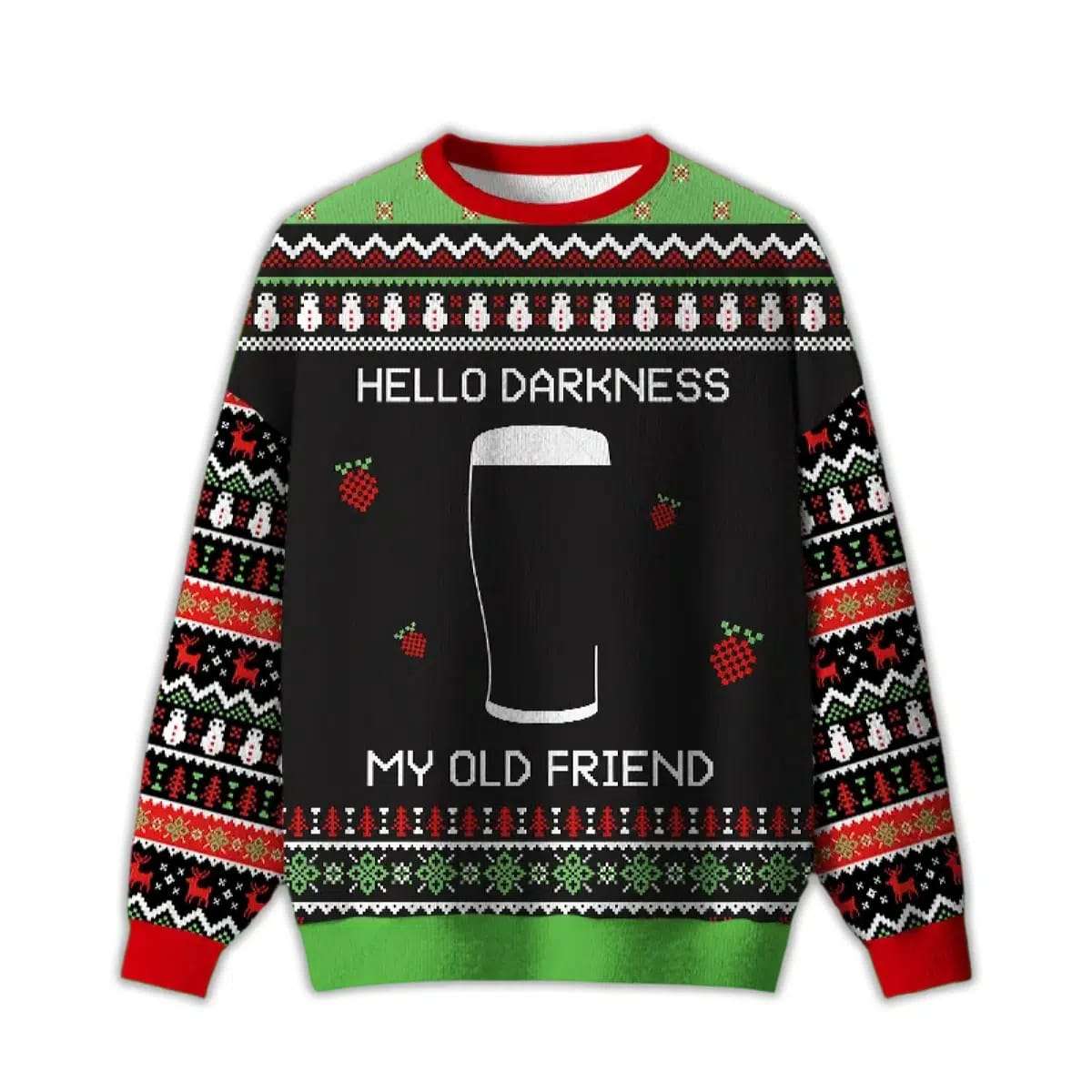 The Hello Darkness My Old Friend Ugly Christmas Sweater blends holiday humor with music nostalgia. Featuring a pint of dark beer and a legendary lyric, it’s perfect for introverts, music lovers, and anyone who finds comfort in quiet rebellion.
