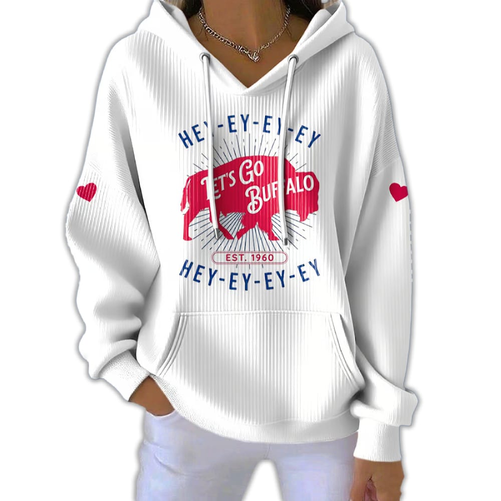 Hey Ey Ey Ey Let’s Go Buffalo Est 1960 Pit Striped Hoodie – Legacy of Team Pride