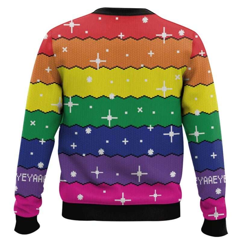 The HEYYEYA HE-MAN Merry Christmas Ugly Sweater celebrates the classic 1980s animated series He-Man and the Masters of the Universe. Featuring He-Man in a joyful pose with a vibrant rainbow backdrop, it encapsulates the series’ adventurous spirit with a festive twist.