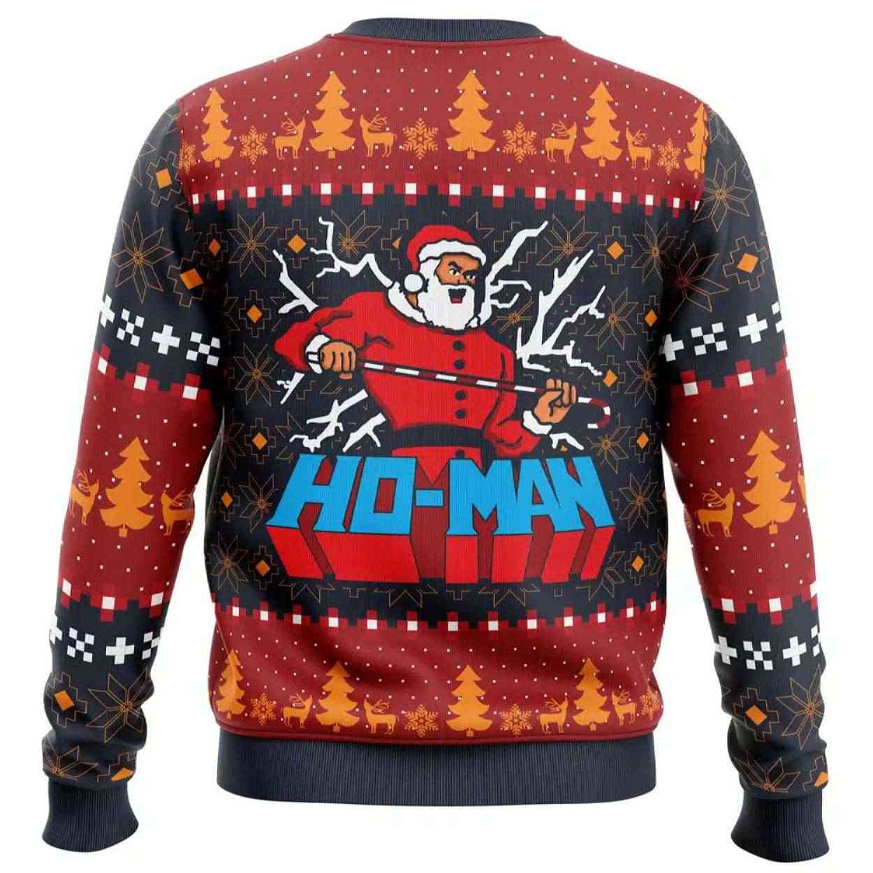 Unleash holiday hilarity with the Ho-Man Santa Claus Ugly Christmas Sweater. Featuring a muscle-bound Santa inspired by He-Man, this bold design fuses retro pop culture with festive flair. Perfect for parties, nostalgia lovers, and those who like their holidays heroic.