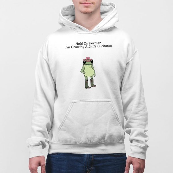 Hold on Partner I’m Growing A Little Buckaroo Frog Pregnancy Shirt – Fun & Playful Expecting Parent Tee