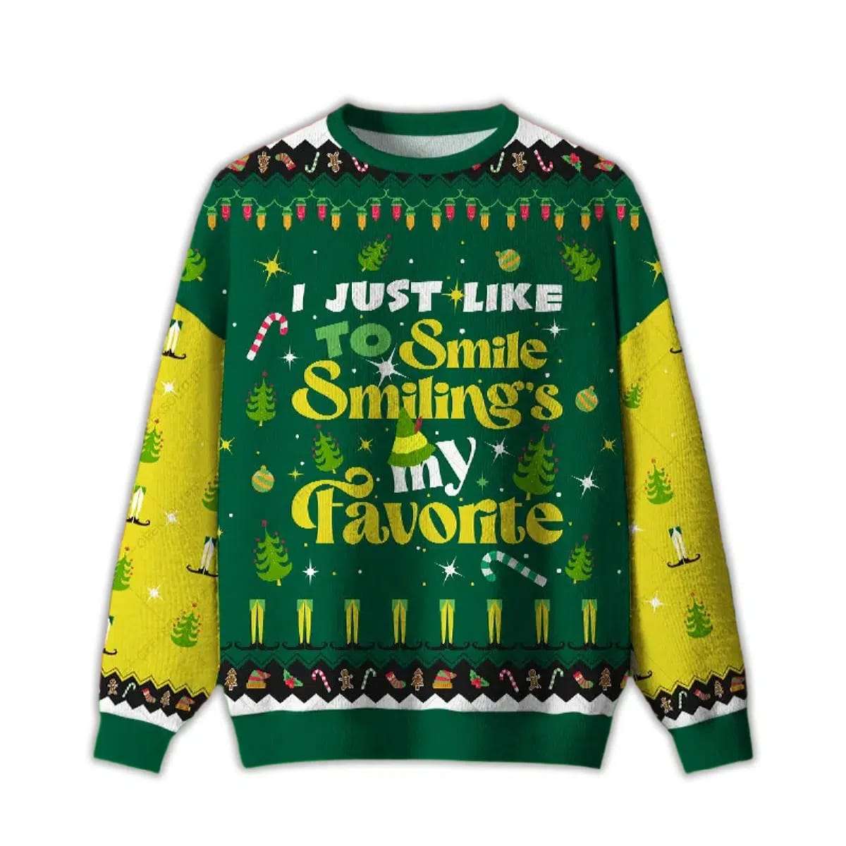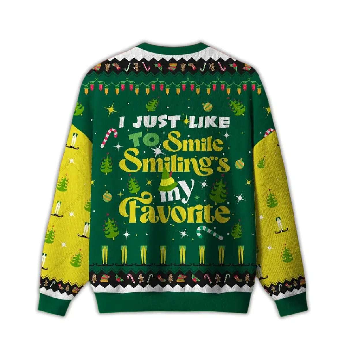 The phrase “I Just Like To Smile, Smiling’s My Favorite” echoes Buddy the Elf’s iconic line from the 2003 film Elf, a character whose unwavering positivity became a cultural symbol of childlike wonder and emotional resilience during the holiday season.